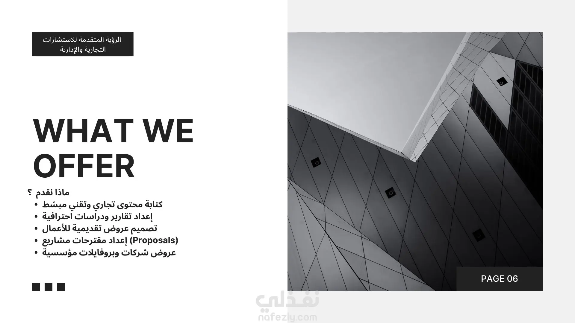 أصمّم عروض تقديمية احترافية تساعدك على عرض أفكارك، خدماتك، أو مشاريعك بشكل واضح، منظم، وجذاب بصريًا. الخدمة مناسبة للشركات، الاستشاريين، رواد الأعمال، والعروض الموجهة للإدارة أو المستثمرين. أركّز على المحتوى أولًا، ثم التصميم، لضمان عرض مقنع يعكس احترافية عملك.
