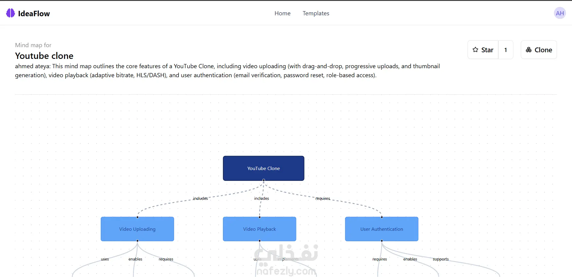 IdeaFlow هو تطبيق ويب تعاوني لإدارة ورسم الخرائط الذهنية يساعد الأفراد والفرق على تحويل الأفكار إلى مخططات واضحة ومنظمة. يتيح للمستخدمين إنشاء خرائط ذهنية بسهولة، حفظها، نشرها، مشاركتها مع الآخرين، واستنساخها للتعديل والتطوير، مما يسهل عملية العصف الذهني وتنظيم الأفكار بشكل احترافي. يدعم المشروع العمل التعاوني ويوفر تجربة استخدام سلسة مع نظام متكامل لإدارة المستخدمين والصلاحيات باستخدام التوثيق الآمن. كما تم دمج تقنيات الذكاء الاصطناعي لمساعدة المستخدمين على توسيع أفكارهم واقتراح محتوى جديد وتحسين جودة الخرائط الذهنية. تم بناء النظام باستخدام ASP NET Core مع تطبيق مبادئ Clean Architecture و CQRS لضمان قابلية التوسع وسهولة الصيانة. يعتمد على SQL Server لإدارة البيانات و Redis لتحسين الأداء، مع دعم للأمان باستخدام JWT و Identity. المشروع مصمم ليكون سريعًا، آمنًا، وقابلًا للتطوير، ومناسب للاستخدام في البيئات التعليمية والشركات والفرق الإبداعية.