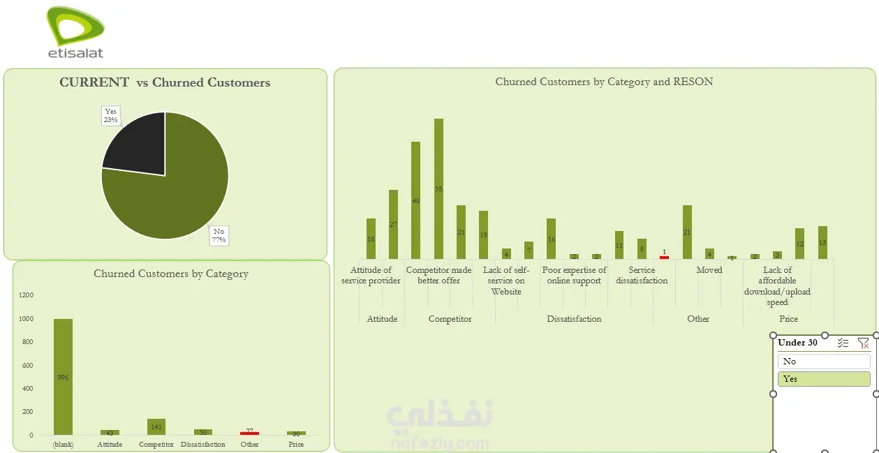 تنظيف و تحليل بيانات لشركة اتصالات بواسطه اكسيل و بوريك بيفت