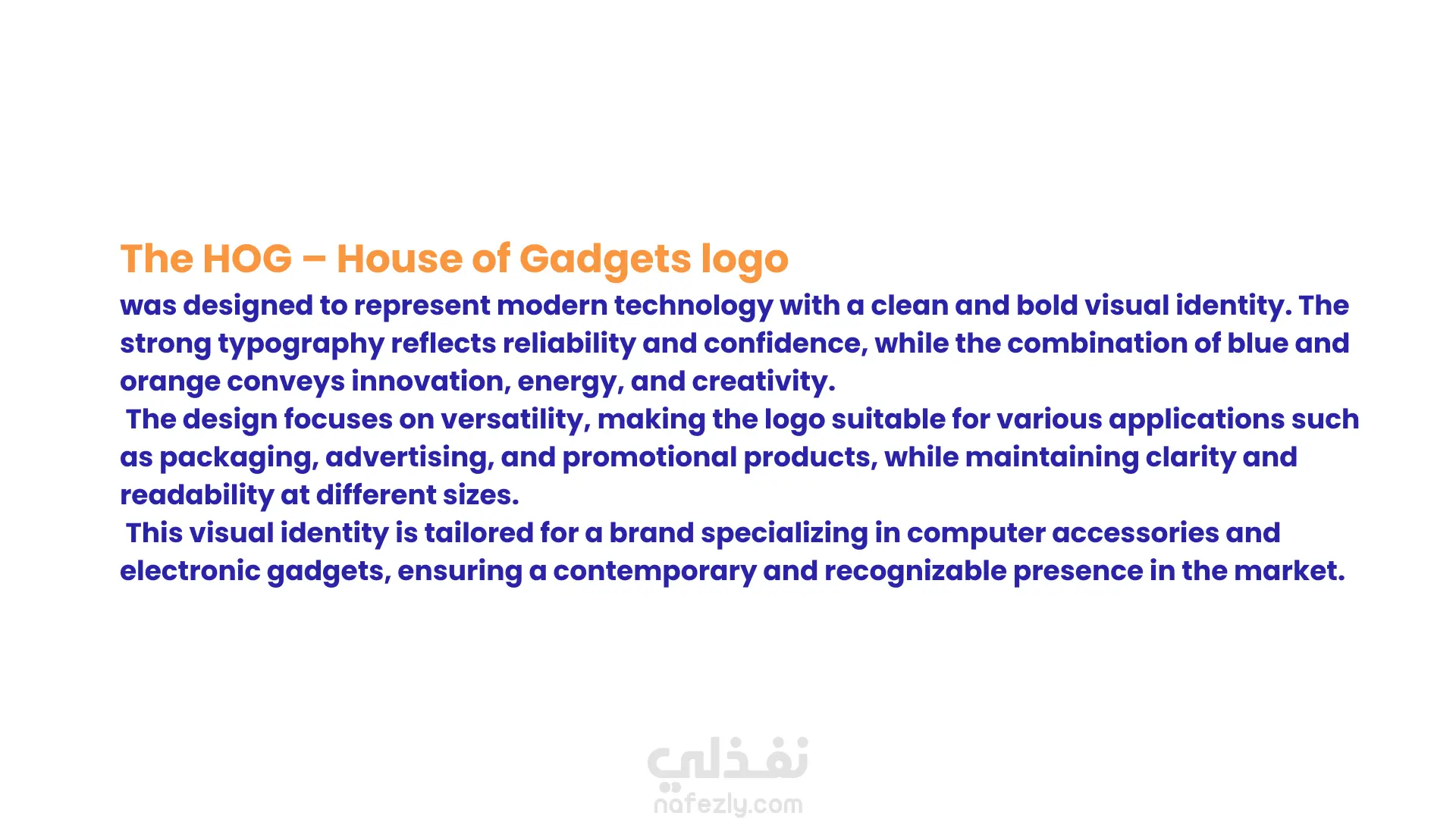 تم تصميم شعار HGO بأسلوب حديث وبسيط ليعكس القوة والاحترافية في مجال التكنولوجيا والإلكترونيات. يعتمد التصميم على حروف واضحة ومتوازنة تمنح العلامة التجارية حضورًا قويًا وسهل التمييز. تم اختيار الألوان بأسلوب يعبر عن الابتكار والطاقة، مما يجعل الشعار مناسبًا للاستخدام على المنتجات، المطبوعات، والمنصات الرقمية مع الحفاظ على وضوحه في جميع الأحجام.