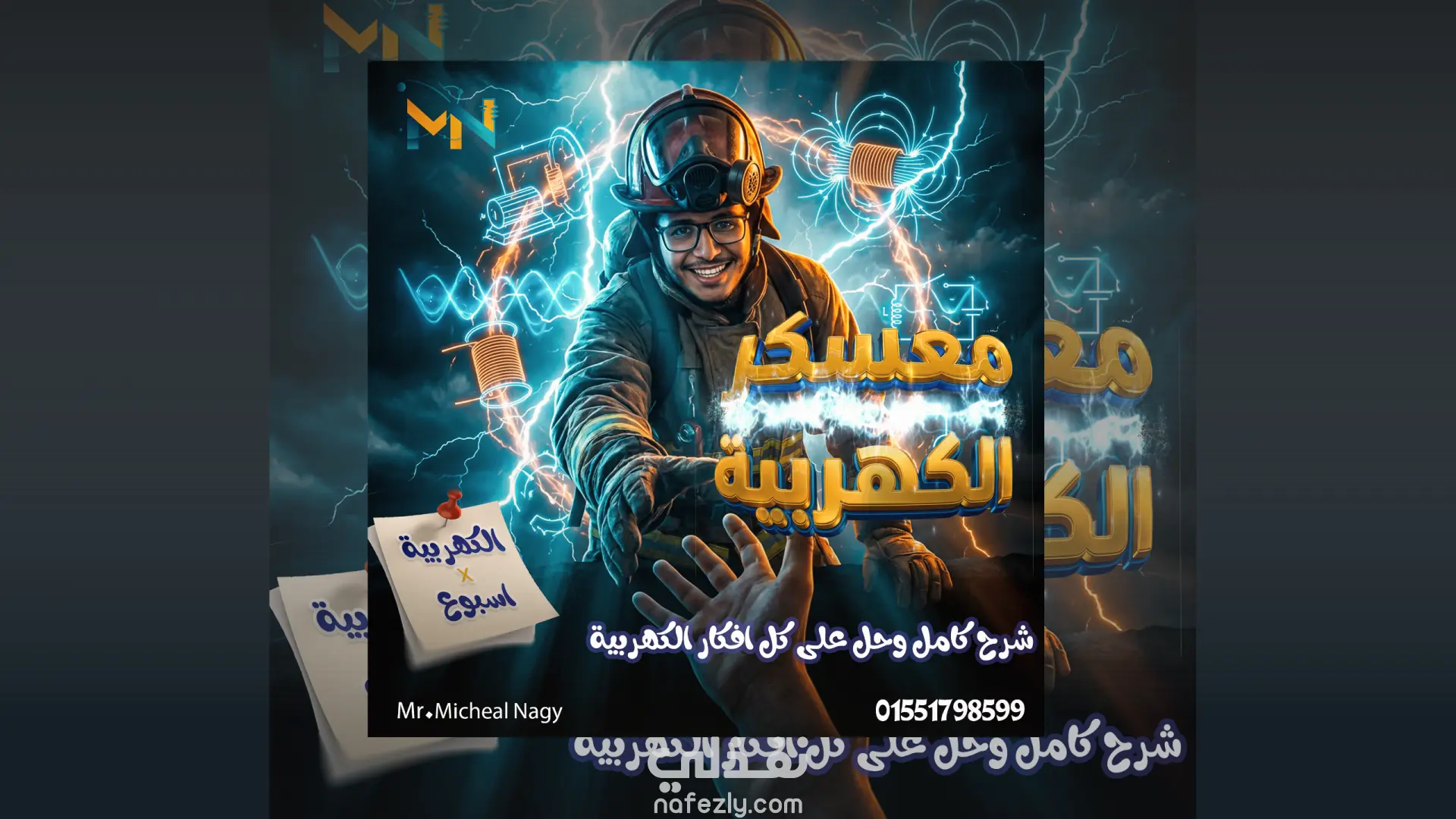 تصميم بوستر إعلاني تعليمي لمادة الفيزياء – الكهربية بأسلوب سينمائي يعتمد على الدمج الاحترافي والخيال البصري، بهدف جذب انتباه طلاب الثانوية وتحويل المحتوى العلمي الجاف إلى تجربة بصرية ممتعة وقوية التأثير. تم تنفيذ التصميم باستخدام تقنيات الدمج (Photo Manipulation) لخلق مشهد درامي يوصل فكرة “إنقاذ الطالب من صعوبة الكهربية”، مع توظيف الإضاءة والمؤثرات الكهربائية لإبراز قوة المحتوى العلمي. كما تم الاستعانة بـ أدوات الذكاء الاصطناعي في توليد وتحسين بعض العناصر البصرية، ثم إعادة معالجتها يدويًا داخل Photoshop للوصول إلى نتيجة واقعية ومتناسقة مع المشهد العام. ركزت في العمل على: دمج الشخصيات والخلفية بشكل طبيعي بدون فقدان التفاصيل بناء إضاءة سينمائية متناسقة مع مصدر الضوء الرئيسي توظيف رموز الكهربية (الملفات – الموجات – الشرارات) كعناصر بصرية تخدم الفكرة تصميم تايبوجرافي ثلاثي الأبعاد متناسق مع المشهد ومقروء بوضوح إخراج العمل بجودة عالية مناسبة للسوشيال ميديا والإعلانات الرقمية النتيجة النهائية بوستر قوي بصريًا، يوصل الرسالة التعليمية بشكل غير تقليدي، ويعكس هوية حديثة تعتمد على الإبداع والتقنيات الحديثة.