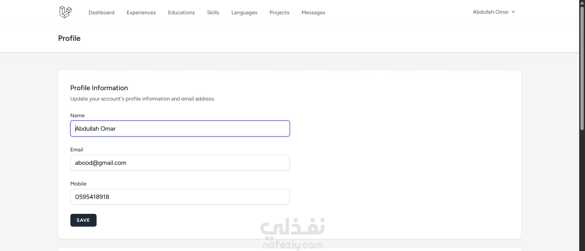 قمت بتصميم وتطوير موقع بروفايل شخصي حديث واحترافي باستخدام Laravel 12 يعرض المهارات، الخبرات، الأعمال السابقة، والخدمات بأسلوب جذاب ومرن، مع لوحة تحكم ديناميكية متكاملة تتيح التحكم الكامل بجميع أجزاء النظام بكل سهولة وأمان.