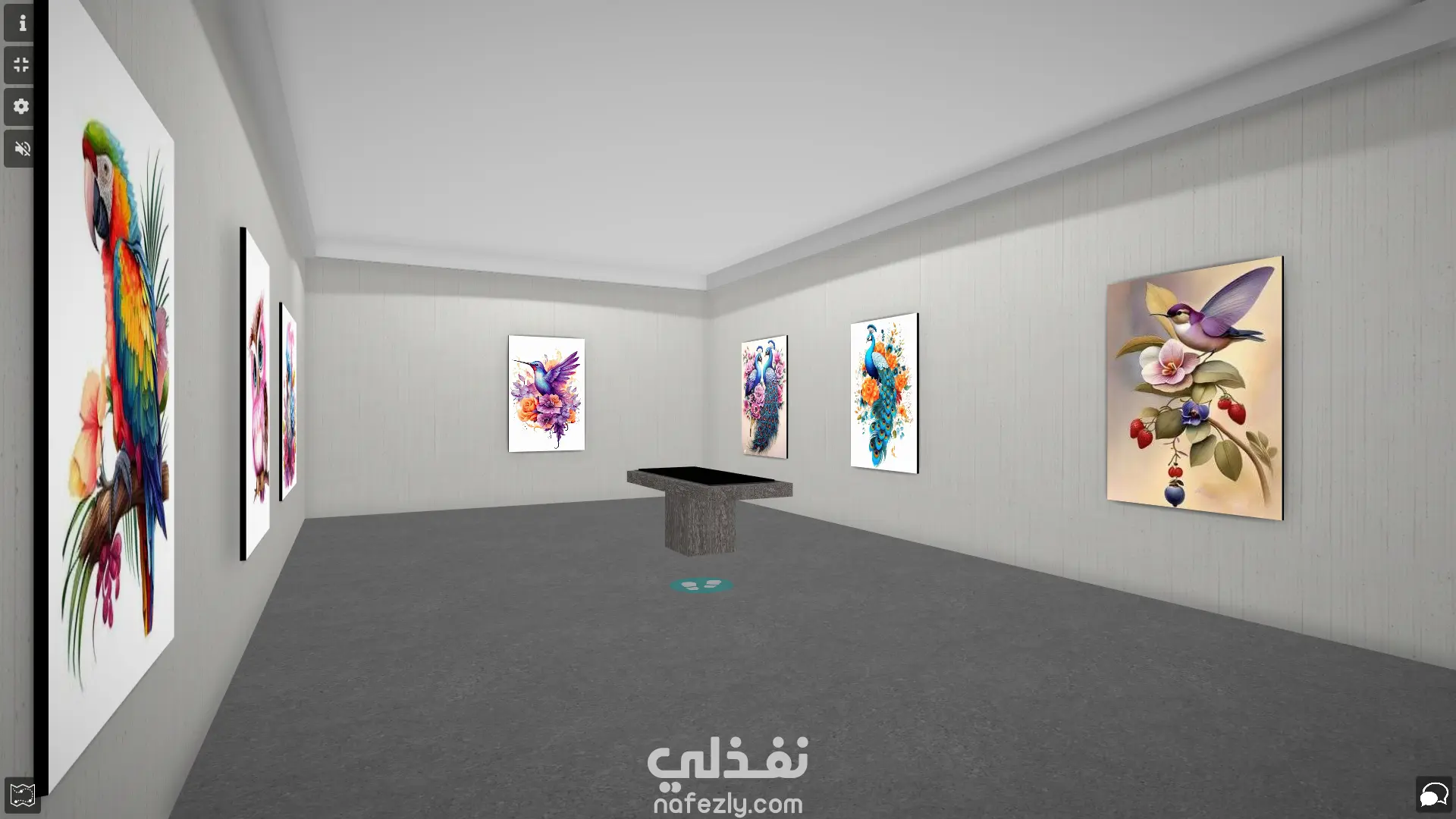 الباقة الأساسية ($50 - $100): تصميم قاعة افتراضية واحدة تضم حتى 10 قطع فنية مع روابط تفاعلية بسيطة.