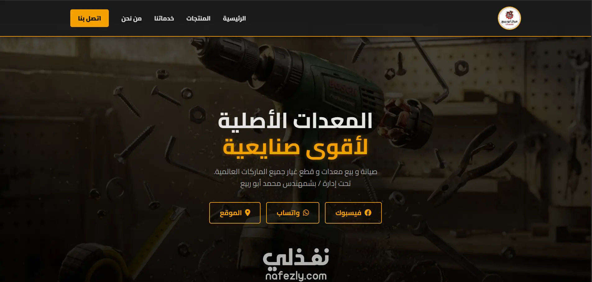 واجهة امامية لموقع تجاري خاص بيبع المعدات الكهربية واليدوية