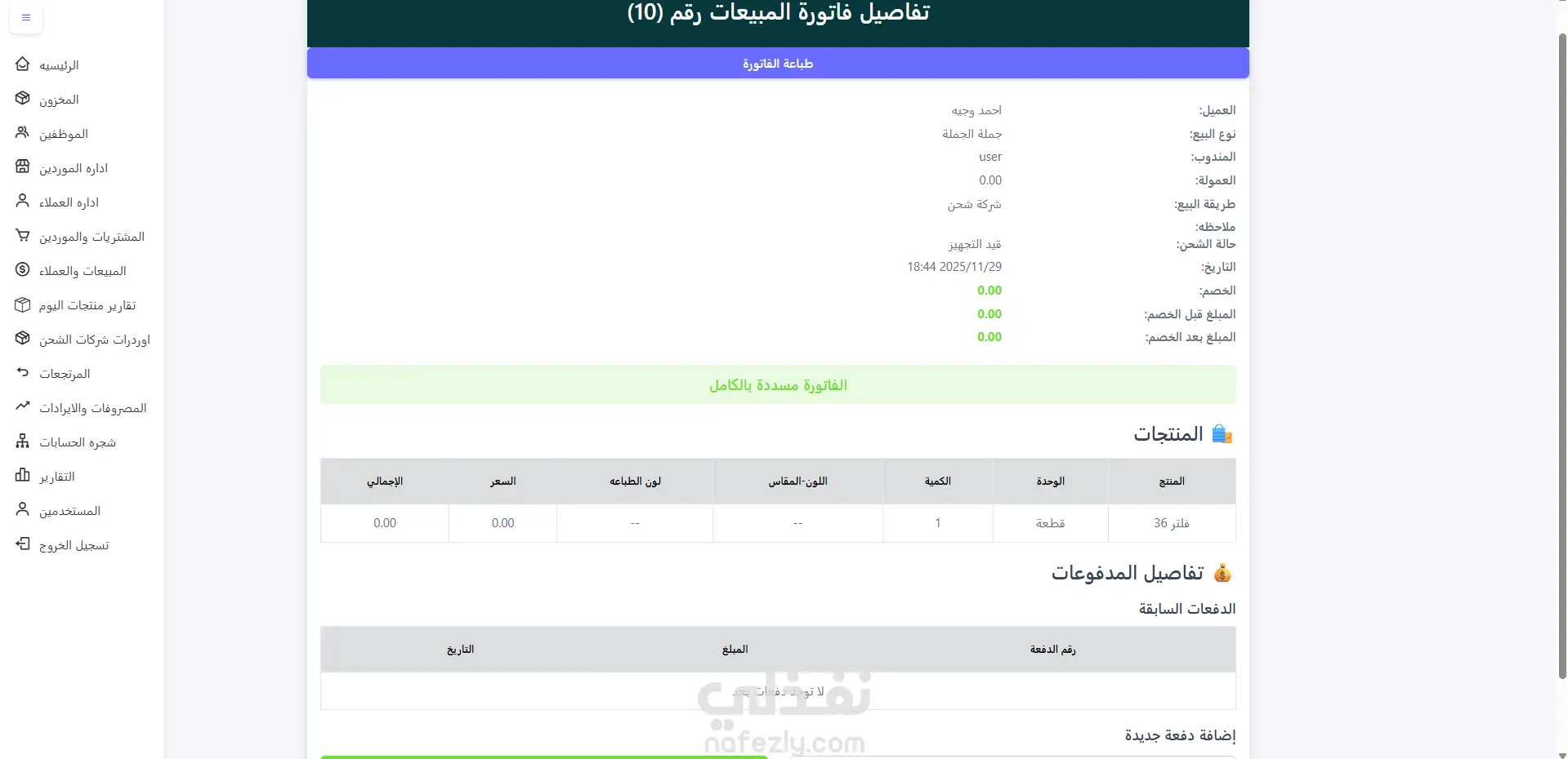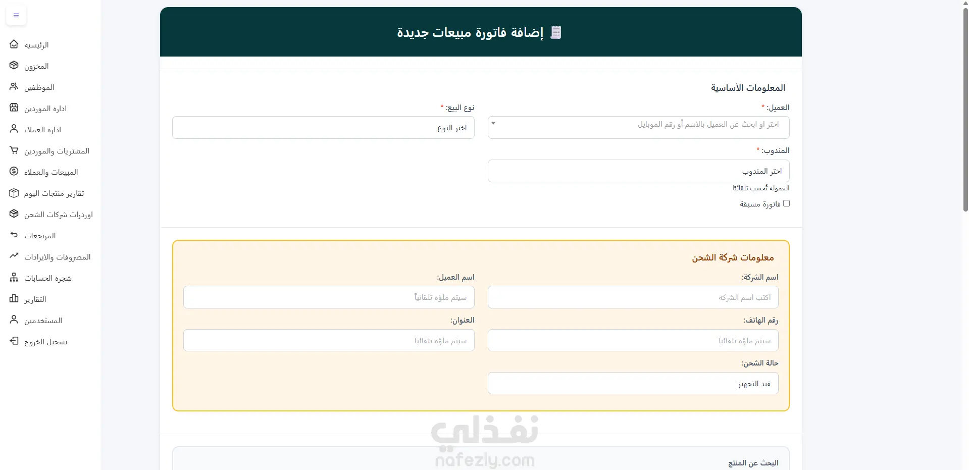 إدارة المبيعات وربط الفواتير بالعملاء مع الطباعة
