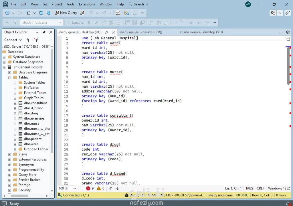 تصميم وبناء قاعدة بيانات (SQL Server) لنظام إدارة مستشفى متكامل