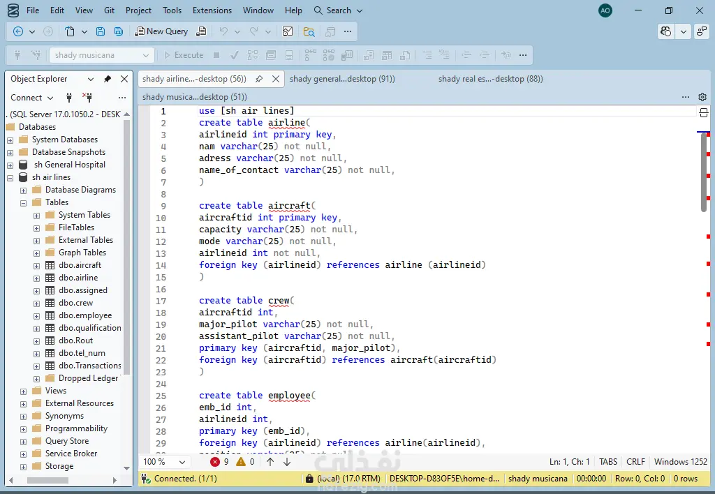 تصميم وبناء قاعدة بيانات (SQL Server) لنظام إدارة شركات الطيران والرحلات الجوية