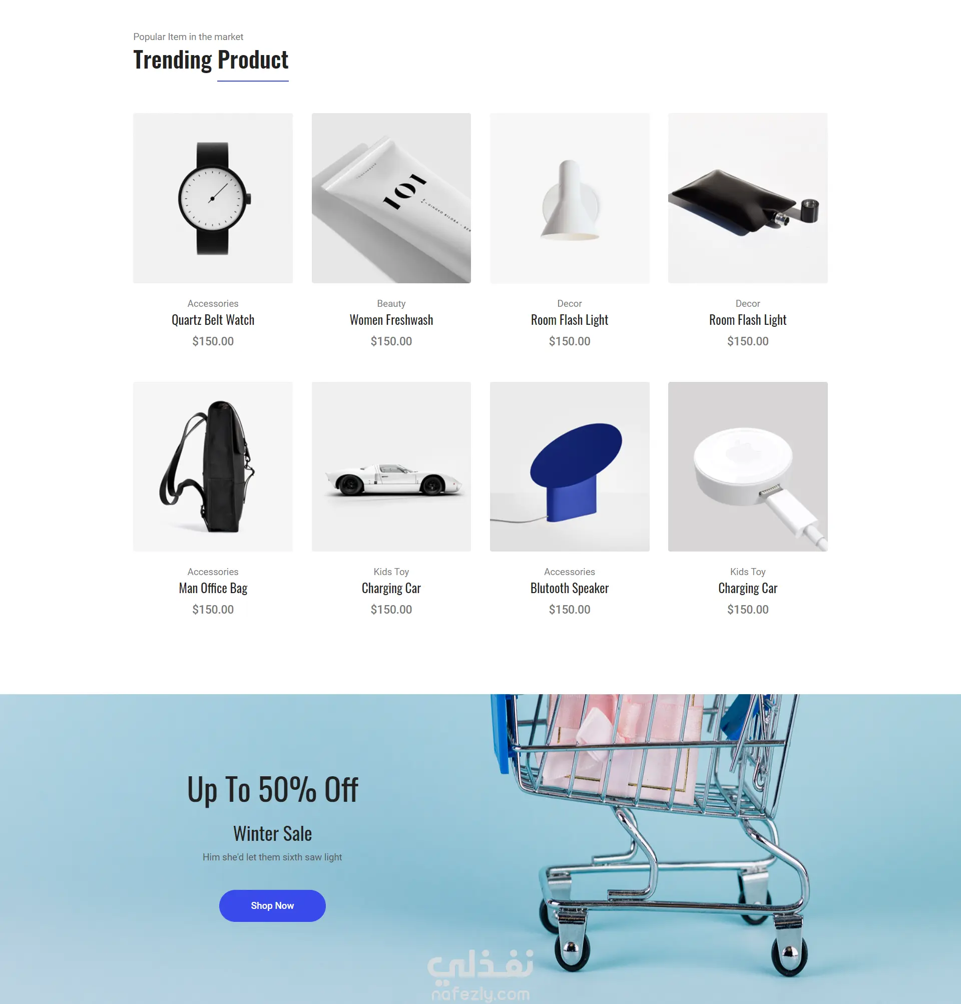 هذا العمل هو عبارة عن متجر إلكتروني كامل باستخدام HTML,CSS,JS,Bootstrap يشمل: عدد الصفحات والأقسام: عدد الصفحات المُطورة: 4 صفحات أساسية(مثل: الصفحة الرئيسية، تصنيفات المنتجات، سلة التسوق، التسجيل/الدخول). عدد الأقسام في الصفحة الواحدة: كل صفحة بمتوسط 3 إلى 5 أقسام رئيسية قابلة للتخصيص، مثل: شريط التذييل الاحترافي(Footer) (4-5 أعمدة). قسم العرض الرئيسي(Hero Section). قسم عرض المنتجات الأكثر مبيعاً(Best Sellers). قسم تصفية المنتجات المتقدم(Shop Category Filters). تفاصيل وميزات الصفحات الرئيسية: صفحة المتجر(Shop Category): تصميم واجهة عرض المنتجات مع شريط مدى الأسعار (Price Slider) و فلتر الماركات (Filters) . صفحة سلة التسوق(Shopping Cart): تكويد صفحة السلة بتصميم واضح ومنظم يشمل تفاصيل الطلب وخيارات التعديل . صفحات الدخول والتسجيل(Log/Reg): تكويد نماذج تسجيل ودخول احترافية وآمنة. عناصر عامة: بناء شريط تنقل علوي(Navbar) متكامل يشمل أيقونات البحث والسلة (Cart) وزر الشراء. الواجهة متجاوبة بالكامل(Fully Responsive)وتعمل بكفاءة على جميع الأجهزة.