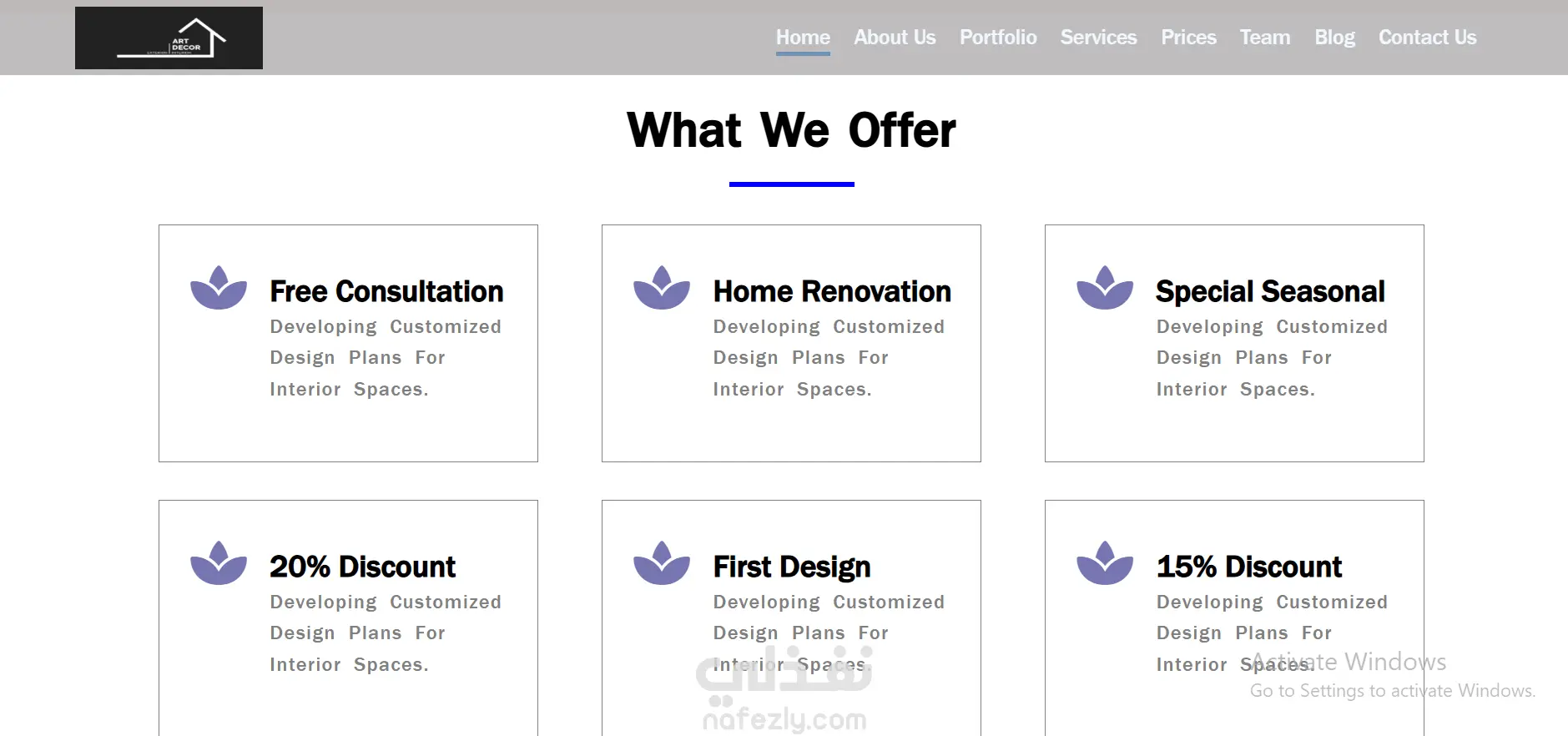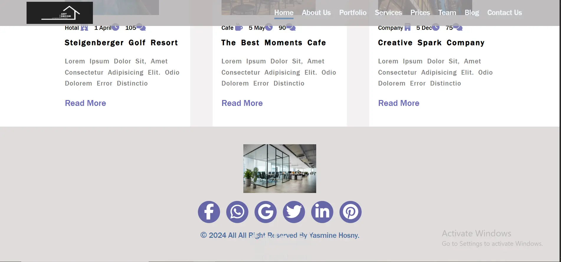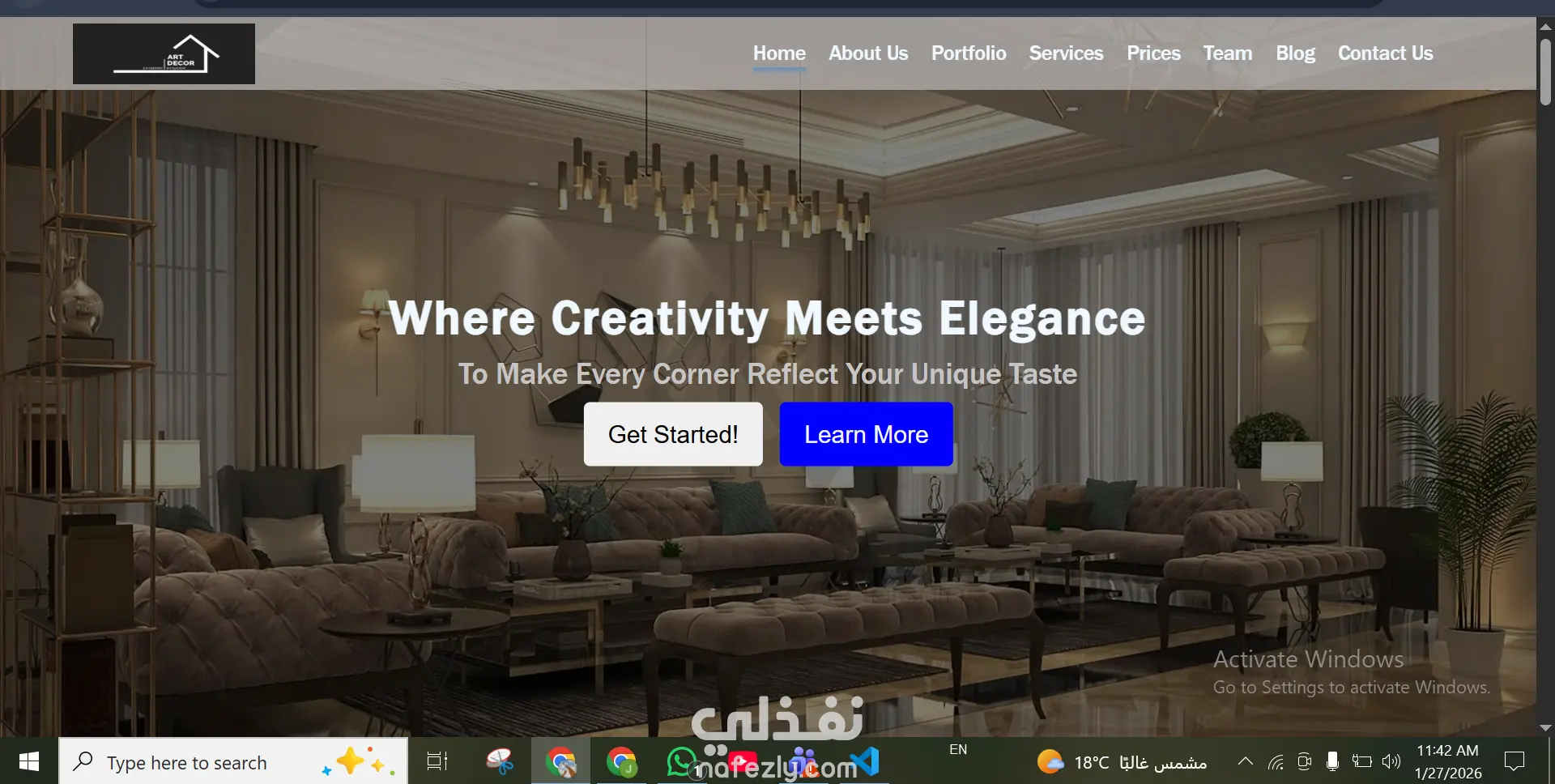 Type of Work Front-End Web Development / Business Website Design Features Clean and professional business website layout Multiple structured sections: Home, About, Services, Portfolio, Pricing, Team, Blog, and Contact Modern UI suitable for interior and space design businesses Responsive layout using pure CSS Clear navigation and well-organized content flow Portfolio gallery for showcasing services and work samples Pricing section for displaying service plans Contact section for client communication Implementation Method The website was developed using HTML5 and CSS3 only, without using any frameworks. The layout and responsiveness were implemented manually using CSS (Flexbox and layout techniques) to ensure full control over the design. The project focuses on clean structure, visual hierarchy, and usability to present a professional business website.