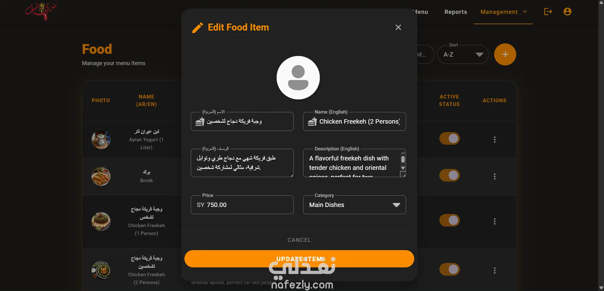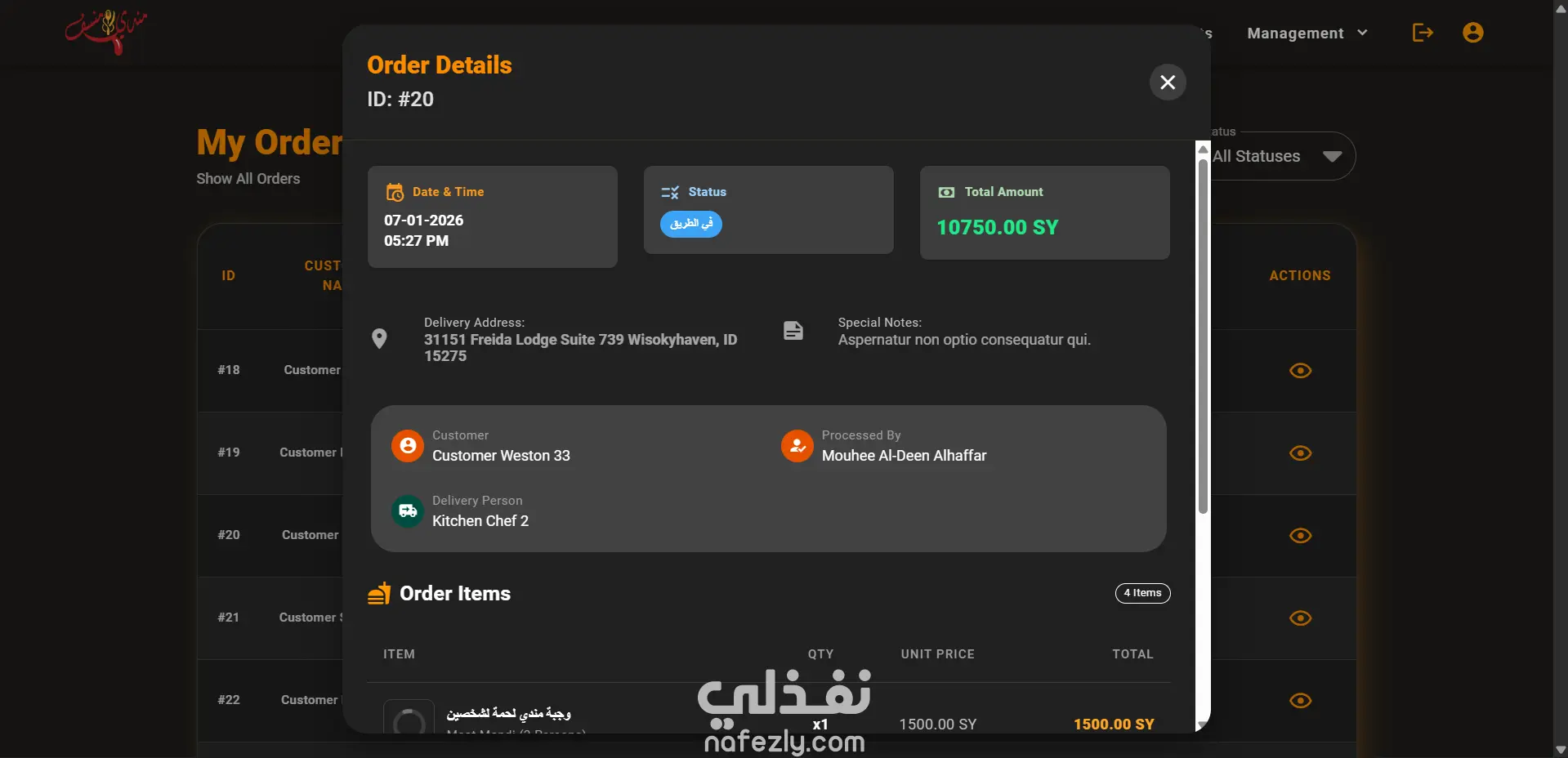 نظام إدارة خدمات المطاعم وتخصيص الطلبات باستخدام المساعد الذكي