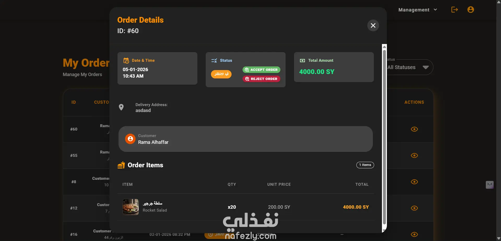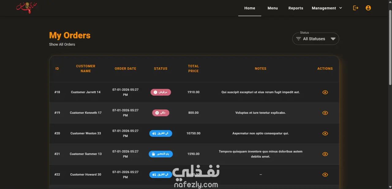 تطوير نظام رقمي متكامل لأتمتة عمليات إدارة المطاعم وخدمات الطعام، يهدف إلى الربط الذكي بين الإدارة والعمليات اليومية وتجربة العميل، ودمج تقنيات الذكاء الاصطناعي لتعزيز تجربة المستخدم وتتبع لحظي للطلبات. يتكون المشروع من: - Back-End مبني باستخدام Laravel مع RESTful APIs منظمة لإدارة العمليات الأساسية - Web Dashboard لإدارة الطلبات، الأصناف، المستخدمين، وحالات الطلب - واجهة عرض (Landing Page) موجهة للزبائن لعرض المنيو وإرسال الطلبات بسهولة تم تصميم النظام ليخدم بيئة عمل حقيقية داخل مطعم، مع التركيز على: - تنظيم العمليات اليومية وتتبّع الطلبات بدقة - سهولة الاستخدام للزبائن والإدارة - قابلية التوسع لإضافة ميزات مستقبلية (الدفع الإلكتروني، تطبيق موبايل، الإشعارات) - بنية واضحة وقابلة للصيانة والتطوير يشمل النظام: - إدارة الأصناف والتصنيفات (Categories & Items) - نظام طلبات مع حالات متعددة (جديد – قيد المعالجة – مكتمل – مرفوض) - نظام تسجيل دخول وصلاحيات للإدارة - لوحة تحكم مرنة لإدارة المحتوى والطلبات - تصميم قاعدة بيانات منظمة تدعم التوسع هذا المشروع يعكس قدرتي على تحويل نشاط تجاري واقعي إلى نظام رقمي عملي ومستقر مبني بأسلوب هندسي قابل للتطوير.