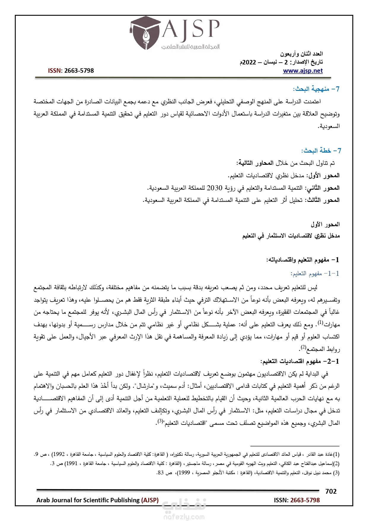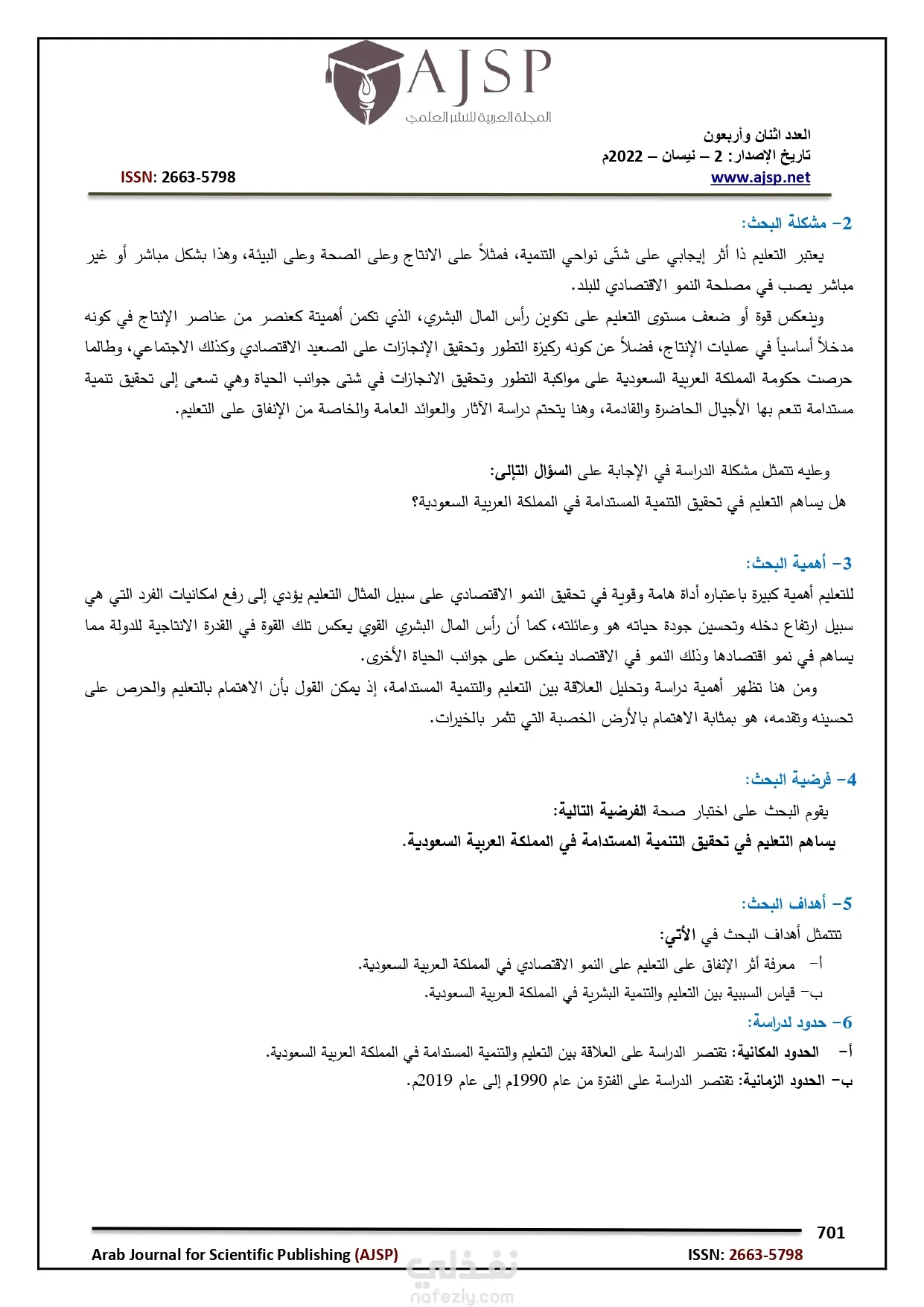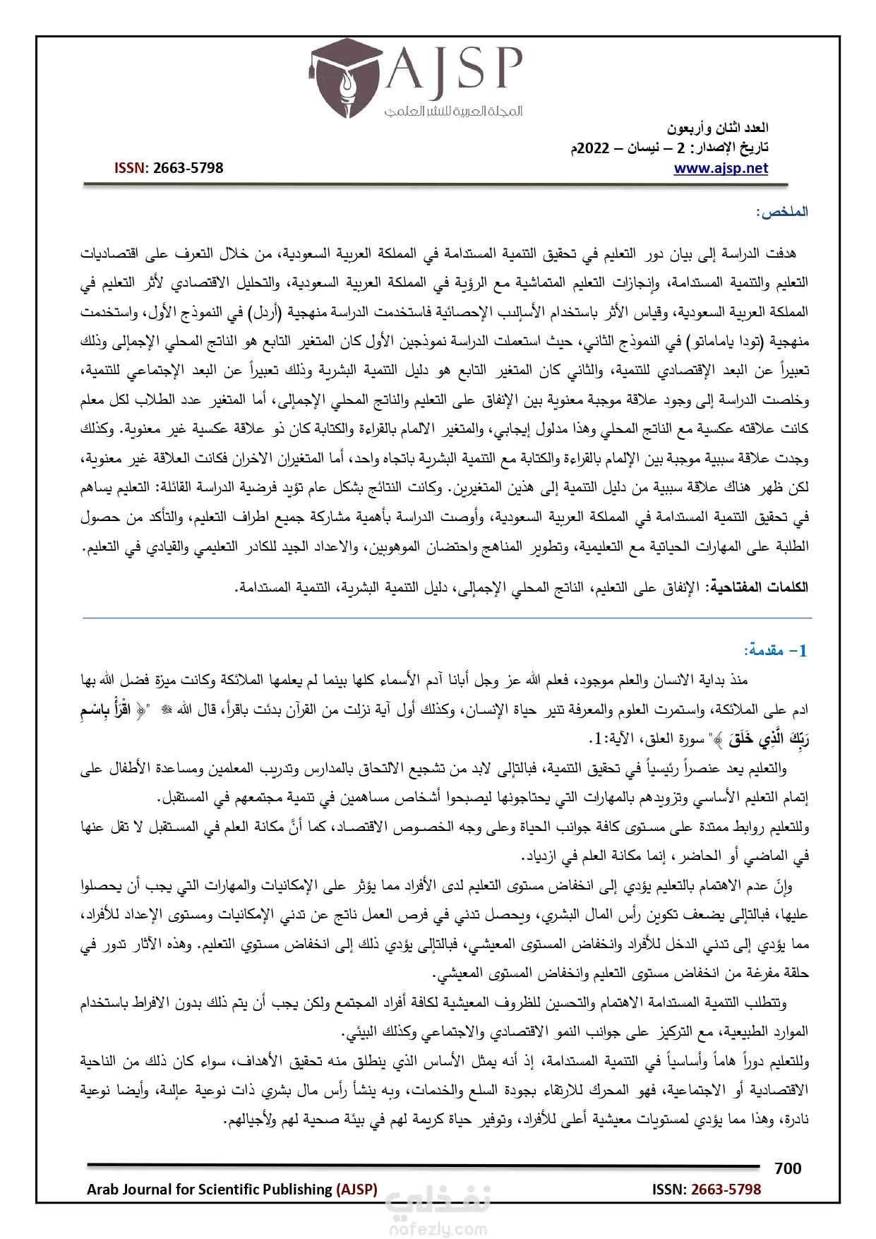 هذا المقال يتكلم عن دور التعليم في تحقيق التنمية المستدامة وبتكون من 10 صفحات