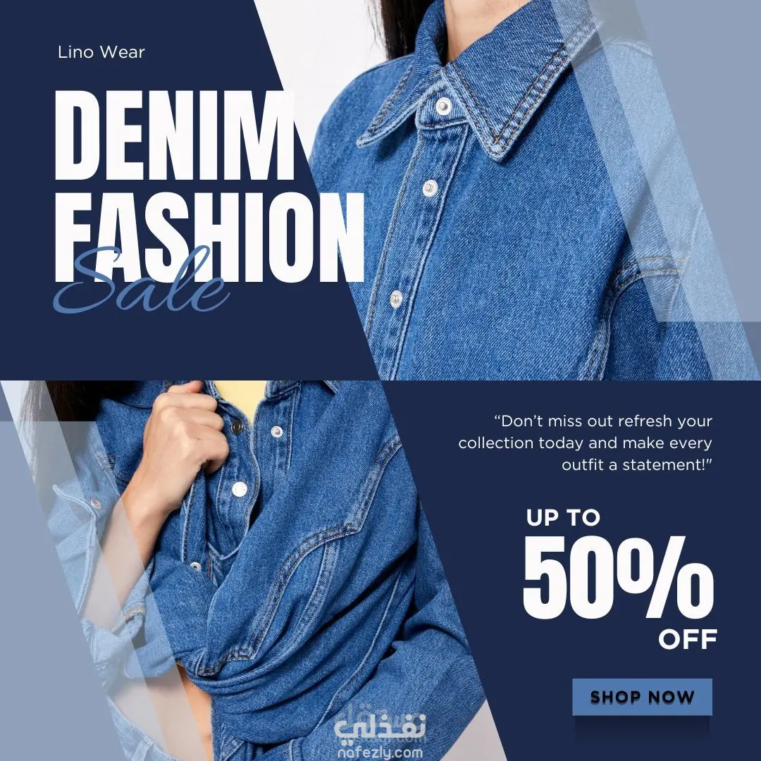 تصميم منشور سوشيال ميديا لبراند ملابس (أزياء – Denim Style