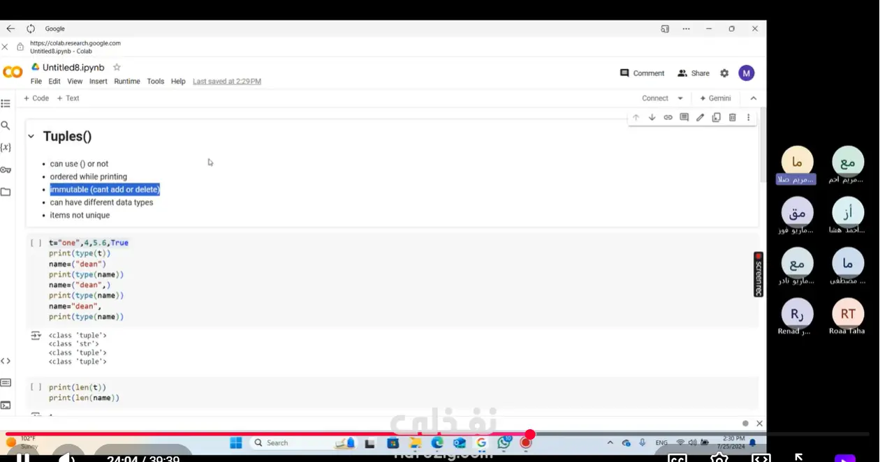 قمت بشرح لغة Python بشكل كامل من الأساسيات وحتى المفاهيم المتقدمة، مع التركيز على تبسيط المعلومة وتقديم أمثلة عملية تناسب المبتدئين. روابط الفيديوهات المرفقة هي مجرد عيّنة من أسلوب الشرح، وتشمل أجزاء من: Functions in Python Data Structures in Python وذلك لإظهار جودة الشرح وطريقة تبسيط المفاهيم البرمجية. عيّنة من الشرح بالفيديو https://youtu.be/EoI1sQLY... https://youtu.be/wgElUuxv... https://youtu.be/M0IlzY2s...