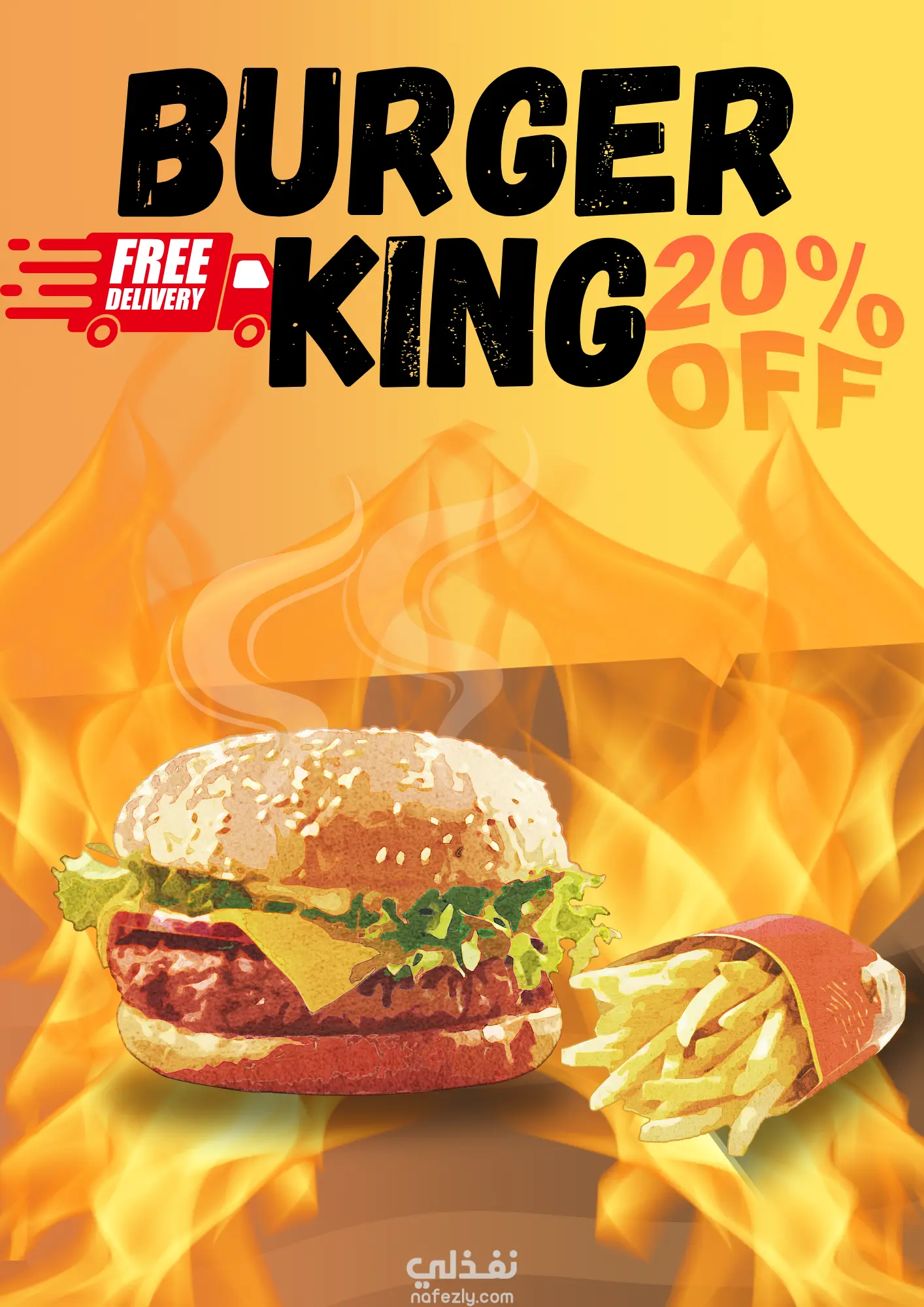 تصميم اعلان لمحل برجر يسمى برجر كنج (متاح التعديل على العمل )