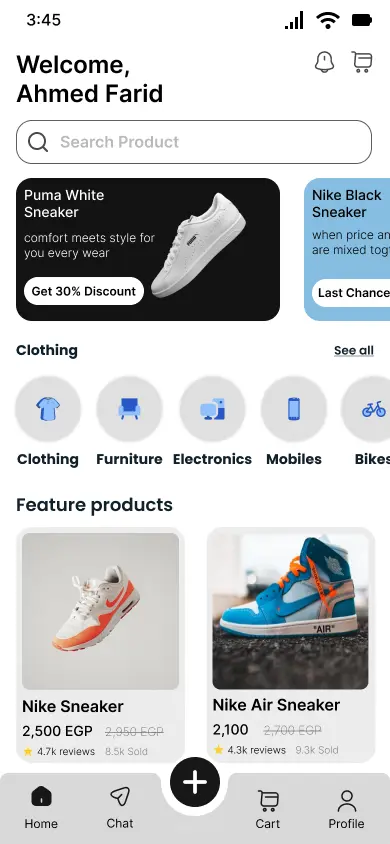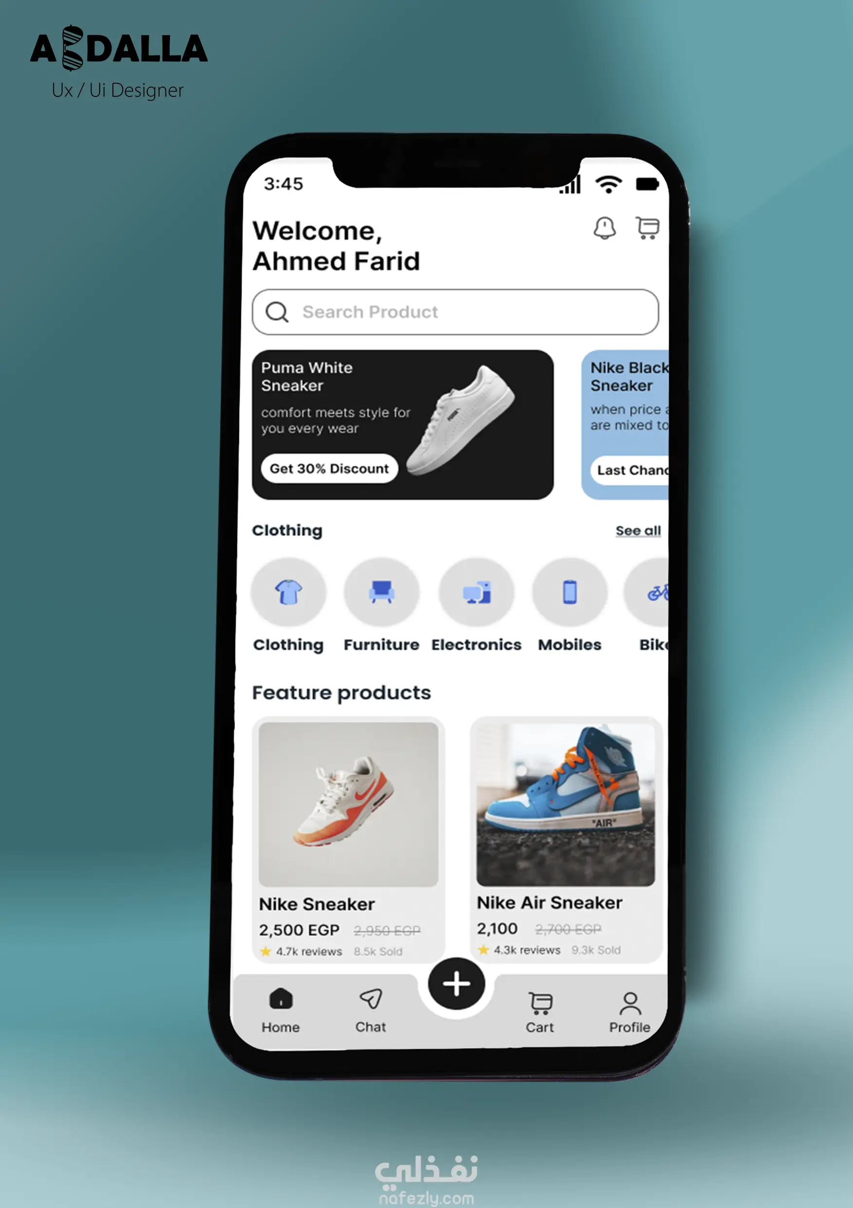 تصميم واجهة مستخدم باستخدام figma لتطبيق متجر أونلاين تخيلي، تم دراسة وتحديد المقاسات، الألوان، والعناصر المناسبة للتصميم، حتى يكون سهل وواضح وقابل للاستخدام بسهول، وكفائة عالية.