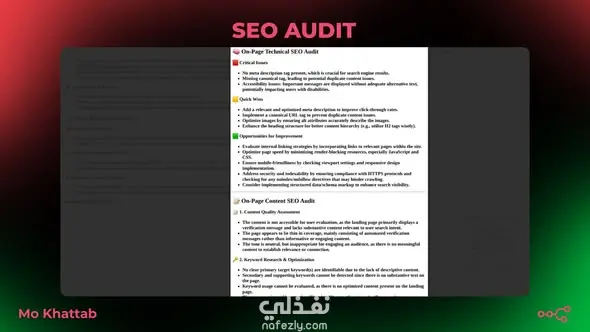 قمت ببناء SEO Audit Agent ذكي يقوم بتحليل المواقع بشكل عملي وعميق، وليس مجرد Check-list أو كلام نظري. كل ما المستخدم يحتاجه: - يحط لينك الموقع - وخلال دقائق يحصل على تقرير SEO احترافي وجاهز PDF يتم إرساله مباشرة على الإيميل. 🔴 المشكلة: معظم أدوات الـ SEO: - بتدي تقارير عامة - معقدة لغير المتخصصين - أو محتاجة وقت كبير لفهمها - ومش بتوضح الأولويات الفعلية للموقع 🟢 الحل: قمت بتطوير Agent ذكي يعتمد على AI Automation يقوم بتحليل الموقع خطوة بخطوة وتحويل البيانات الخام إلى تقرير واضح وسهل الفهم. 🔍 ما الذي يقدمه الـ SEO Audit Agent؟ - Technical SEO Audit - Content Audit - Critical Issues (المشاكل الحرجة) - Quick Wins (تحسينات سريعة) - Opportunities (فرص تحسين مستقبلية) ⚙️ كيف يعمل الـ Agent؟ - سحب كود HTML الخاص بالموقع - تنظيف وتنظيم البيانات - تحليل تقني ومحتوى باستخدام الذكاء الاصطناعي - توليد تقرير SEO واضح ومُنظم - إرسال تقرير PDF جاهز على الإيميل خلال دقائق 📊 النتائج: - فهم حقيقي لوضع الموقع الحالي - تحديد المشاكل الحرجة بدون تعقيد - توفير وقت كبير لمتخصصي SEO وأصحاب المواقع - تقرير احترافي يمكن استخدامه مباشرة مع العملاء 🚀 التطويرات القادمة: - Optimization تلقائي للمشاكل - ربط الـ Audit بـ Agent أكبر يفهم الموقع بالكامل - تنفيذ خطوات من الاقتراحات تلقائياً، وليس مجرد تشخيص 🎯 هذا العمل مناسب لـ: - متخصصي SEO - أصحاب المواقع - الشركات الصغيرة والمتوسطة (SMEs) - أي شخص يريد Audit حقيقي مبني على بيانات، مش كلام عام
