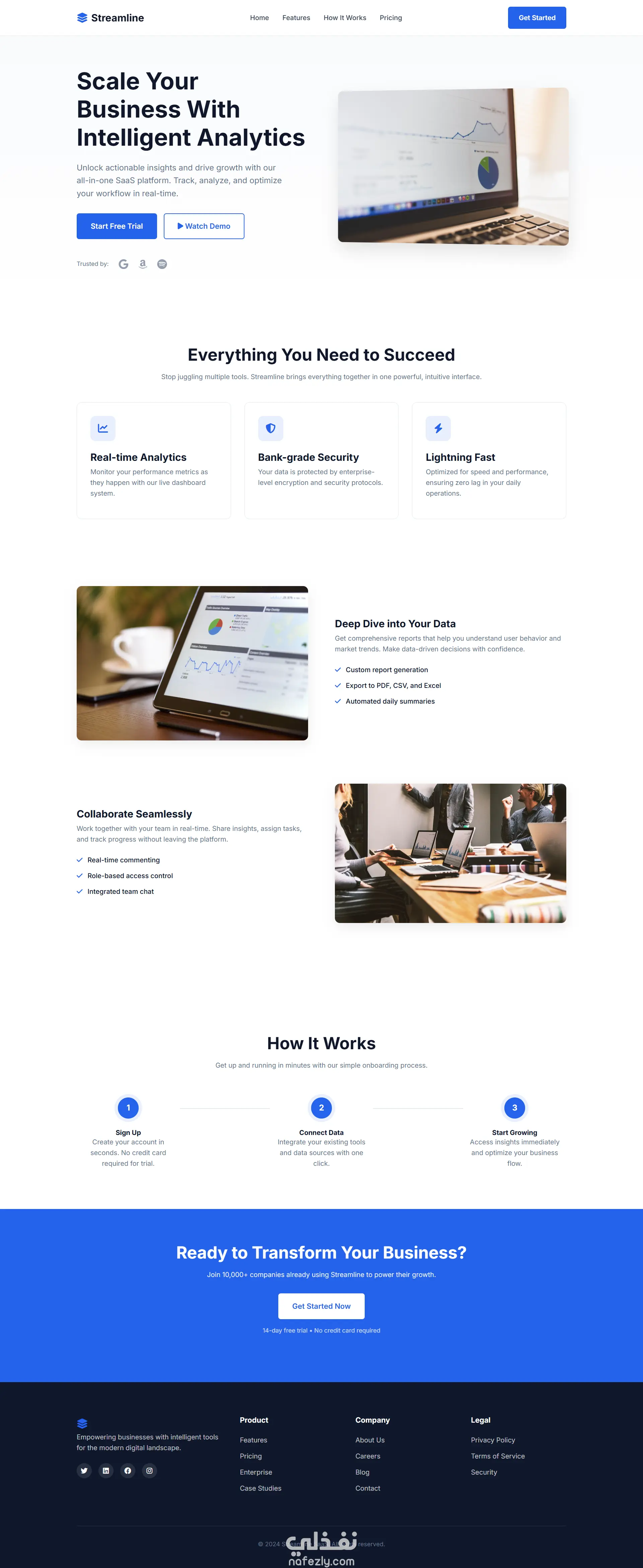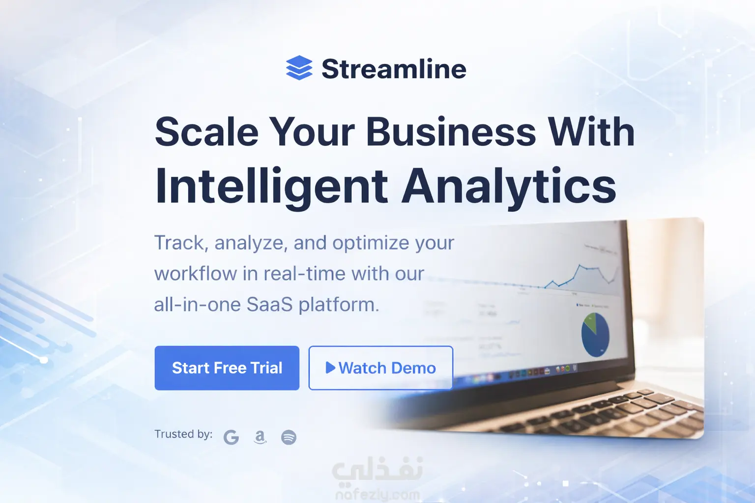 صفحة هبوط ب استخدام html و css و javaScript لعرض خدمات منصة تقنية. - تصميم عصري و بسيط يناسب طبيعة المواقع التقنية ة ال SaaS. - Navbar ثابت (Fixed Navbar) يسهل التنقل بين أقسام الموقع. - Hero Section جذاب يحتوي علي رسالة واضحة توضح فكرة الموقع و قيمته. - أقسام مميزة لعرض الخدمات والمميزات (Features Section) بشكل منظم. - تصميم متجاوب يعمل بكفاءة على جميع الشاشات. - أكواد نظيفة وسهلة التعديل.