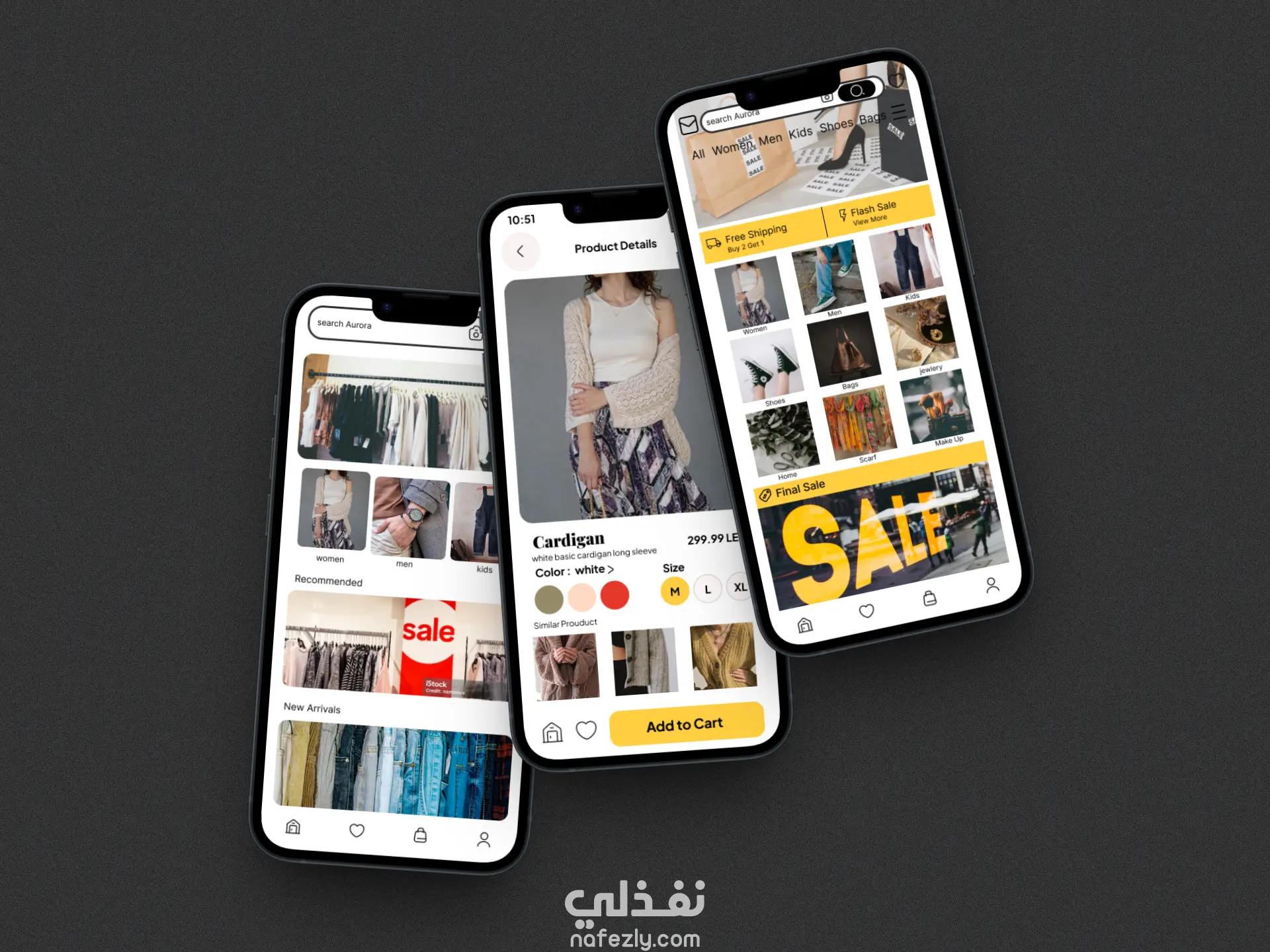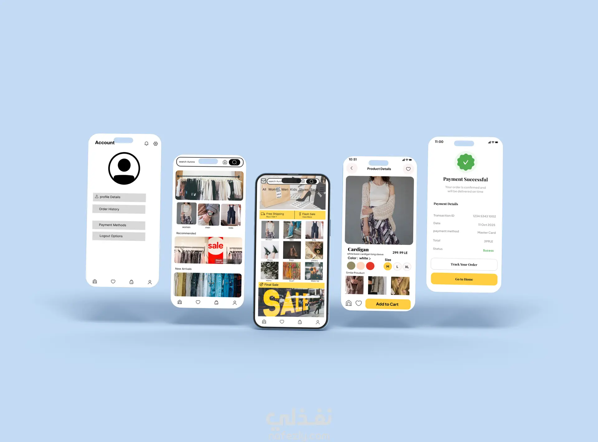 تصميم واجهات وتجربة مستخدم لتطبيق E-commerce للتسوق أونلاين لتسهيل عملية تصفح المنتجات وإتمام الشراء بسلاسة.