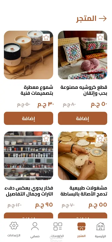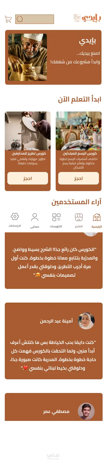هذا المشروع عبارة عن تصميم UI/UX لتطبيق تعليم إلكتروني تم تنفيذه باستخدام برنامج Figma. يهدف التطبيق إلى تقديم مجموعة متنوعة من الكورسات في مجالات مختلفة مثل الحرف اليدوية، الرسم، الخياطة، وغيرها من المهارات الإبداعية.