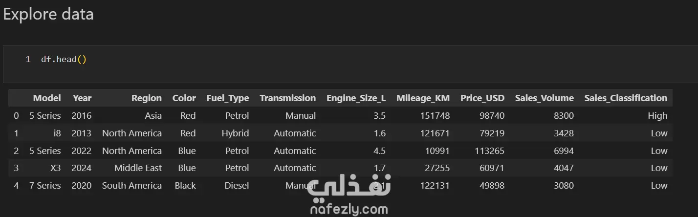 انشاء موديل تعلم الآلة machine learning لتصنيف مبيعات موديل السياره لشركه BMW