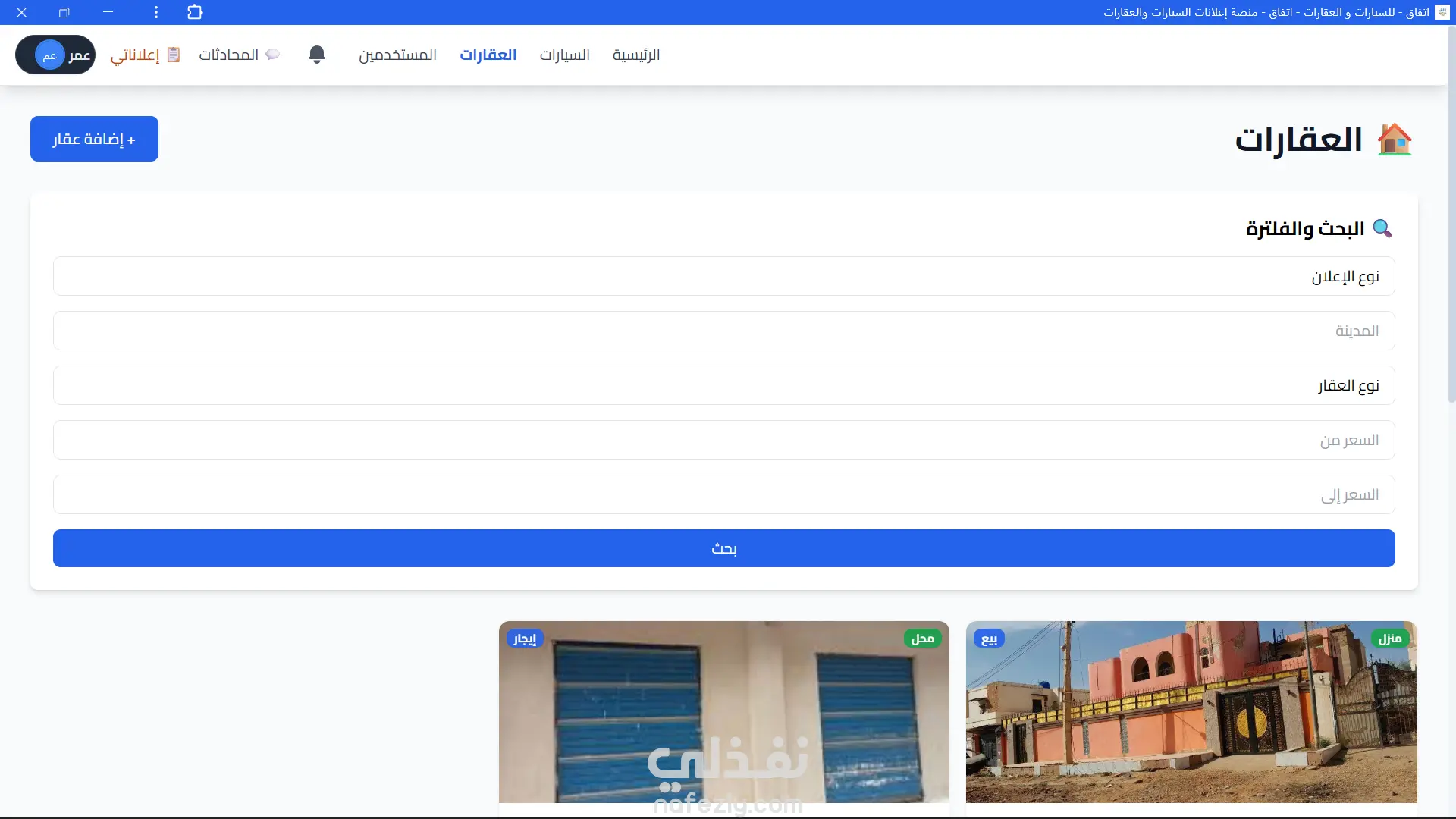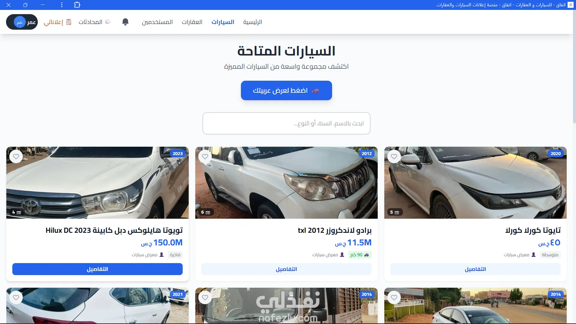 موقع يسمح للمستخدم بعرض سيارته و عقاره للبيع و يعمل ك تطبيق على جميع الانظمة