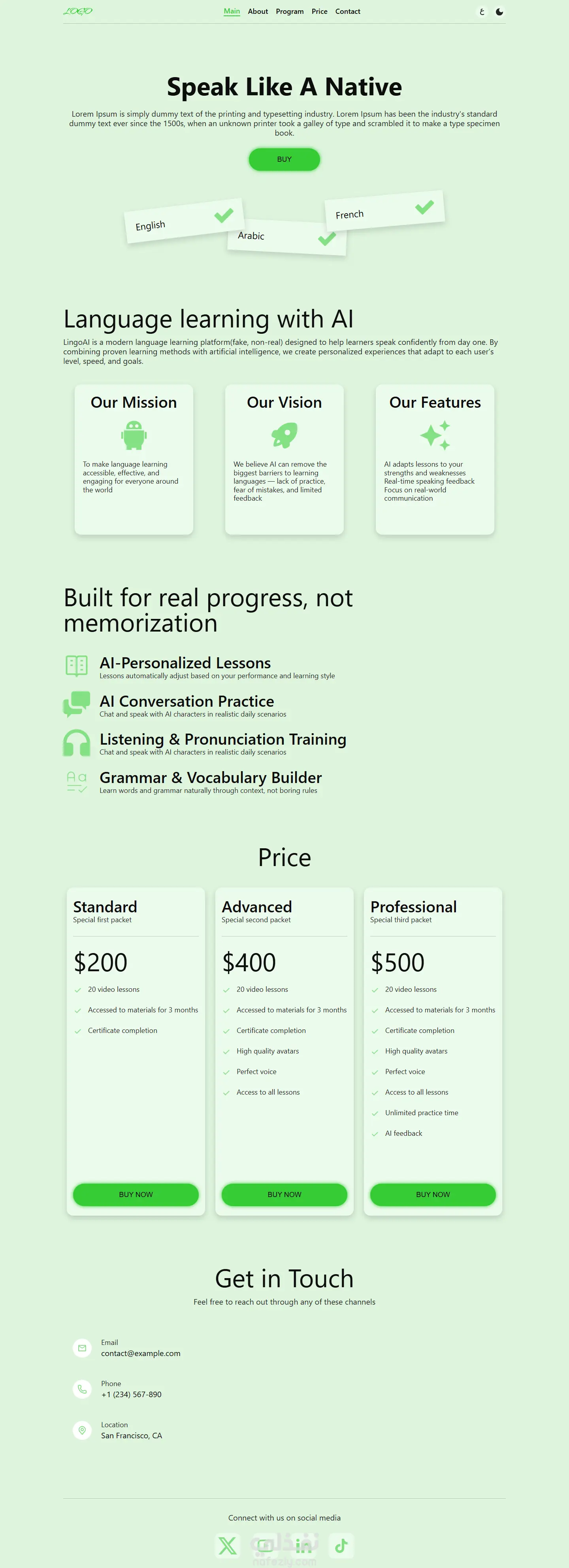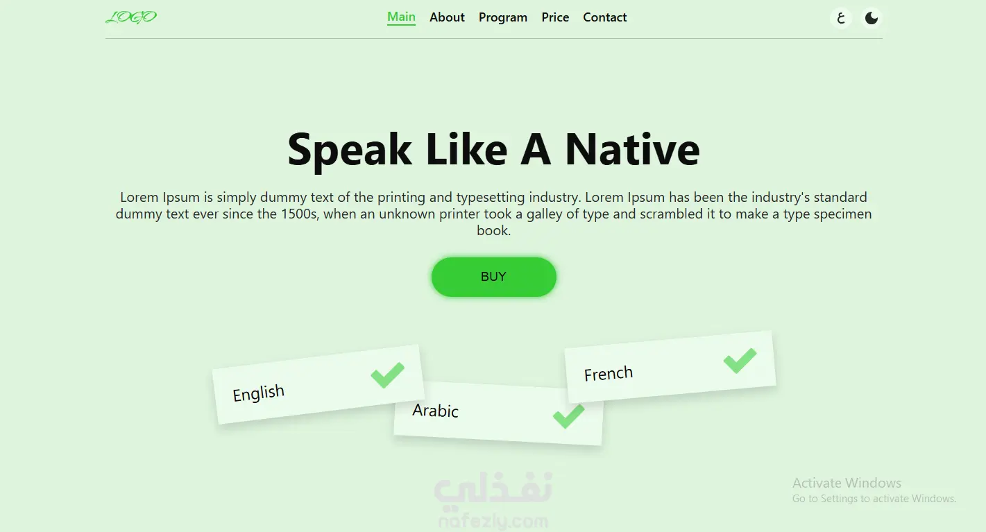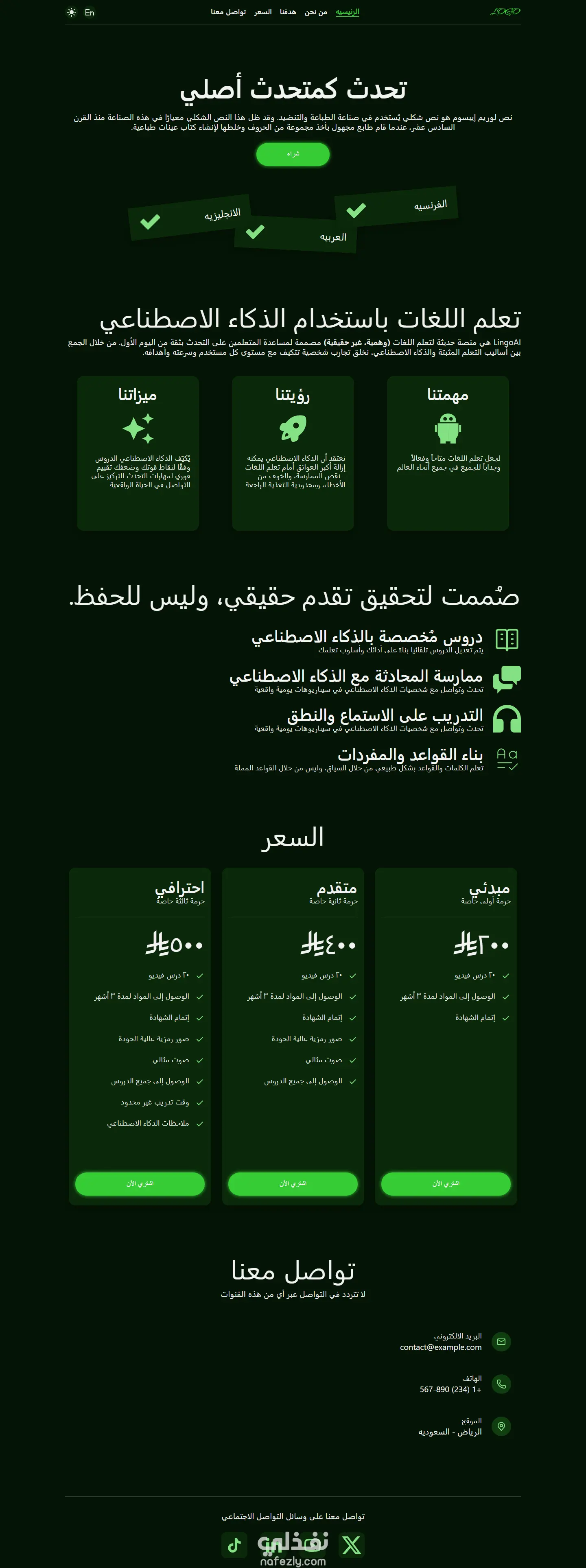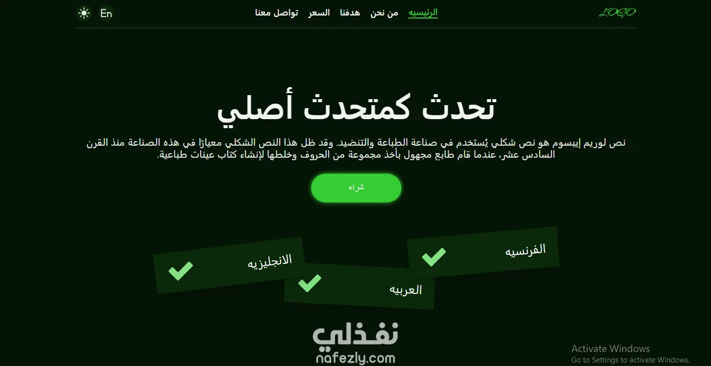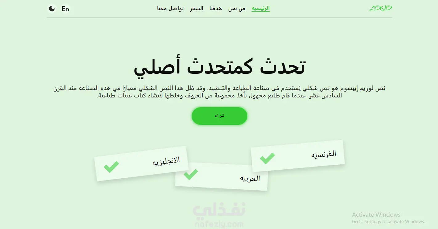 صفحة هبوط متعددة اللغات متجاوبة، مصممة باستخدام Figma ومبنية باستخدام HTML