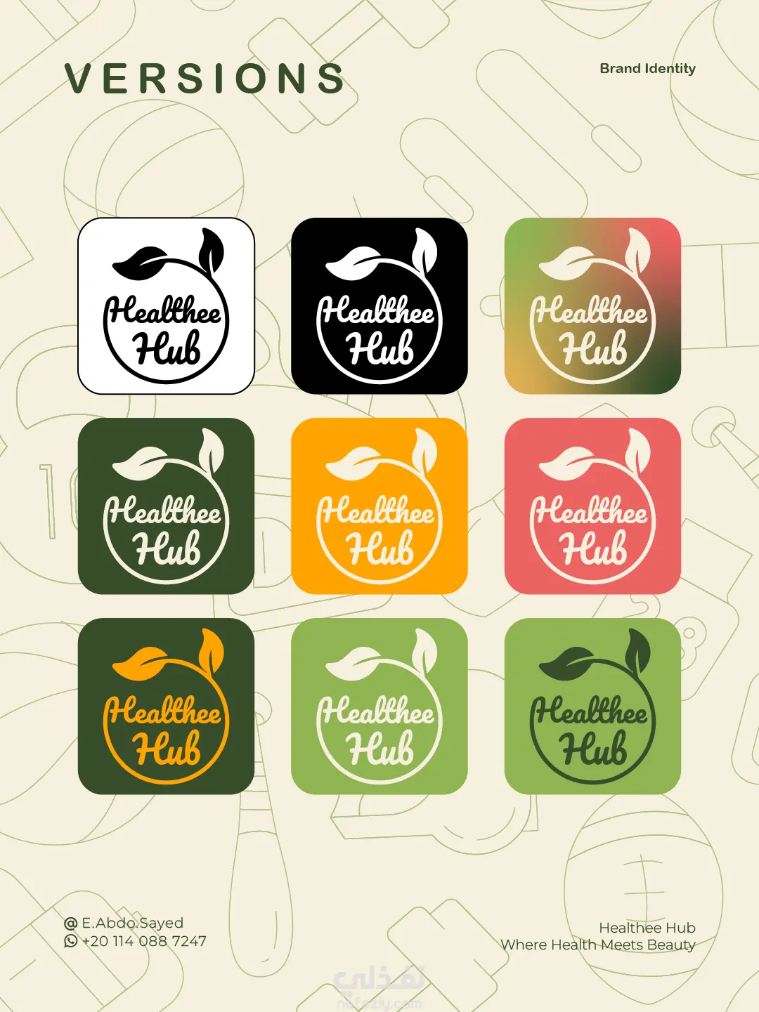 Healthee Hub هو براند متخصص في التغذية العلاجية، يهدف إلى تعزيز الصحة والرفاهية من خلال حلول غذائية علمية وعملية. الهوية البصرية صُممت لتعكس قيم العلامة: الثقة، العناية، والاحترافية، مع لمسة عصرية تجعلها قريبة من الجمهور.