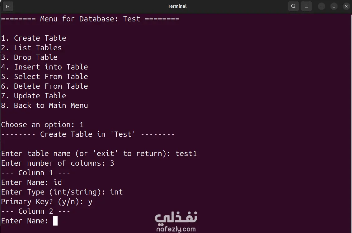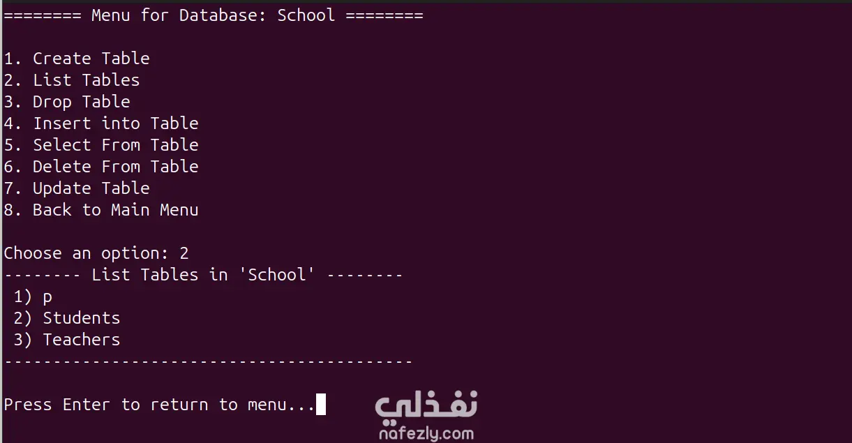النظام يوفّر واجهات نصيّة بسيطة وسريعة للتعامل مع قواعد البيانات والجداول وإدارة البيانات.