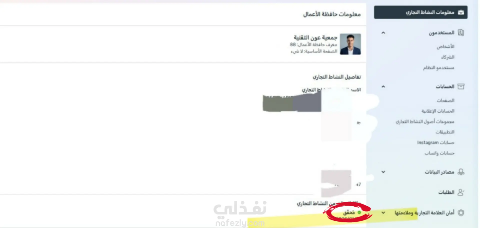 توثيق هوية النشاط التجاري و توثيق مدير أعمال ميتا