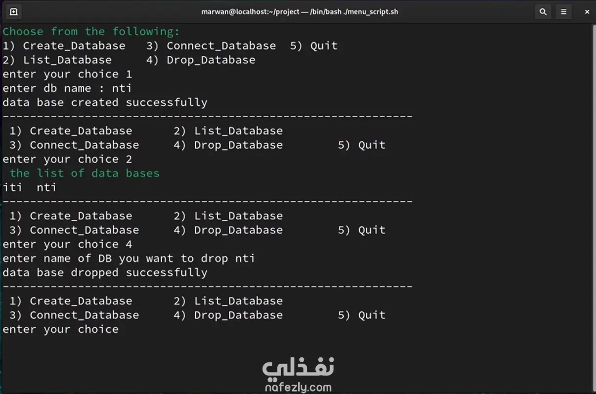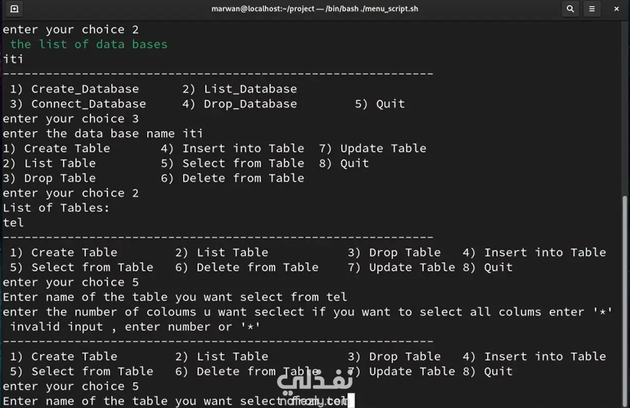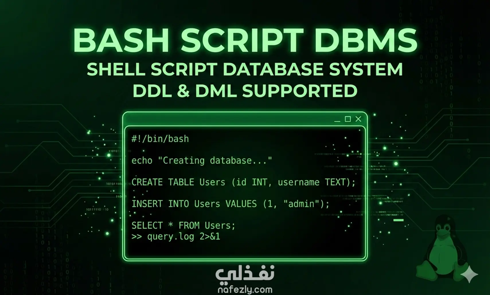 شاركت في تطوير محرك كامل لإدارة قواعد البيانات (DBMS Engine) باستخدام Bash Scripting فقط كجزء من مشروع نهائي في معهد تكنولوجيا المعلومات (ITI). قمت بتصميم وتنفيذ نظام تفاعلي يعتمد على القوائم (Menu-Based System) يحاكي محركات قواعد البيانات الحقيقية، ويشمل: إدارة قواعد البيانات (إنشاء، عرض، حذف، والاتصال بقاعدة البيانات). إدارة الجداول باستخدام أوامر DDL مثل إنشاء وحذف الجداول مع تحديد أنواع البيانات والمفاتيح الأساسية. تنفيذ عمليات DML مثل الإدراج، التحديث، الحذف، والاستعلام باستخدام شروط بحث. تم بناء المشروع بالاعتماد على أدوات معالجة النصوص والملفات في لينكس مثل awk وsed وgrep، مما عزّز فهمي العميق لإدارة البيانات والتعامل مع الملفات على مستوى النظام.