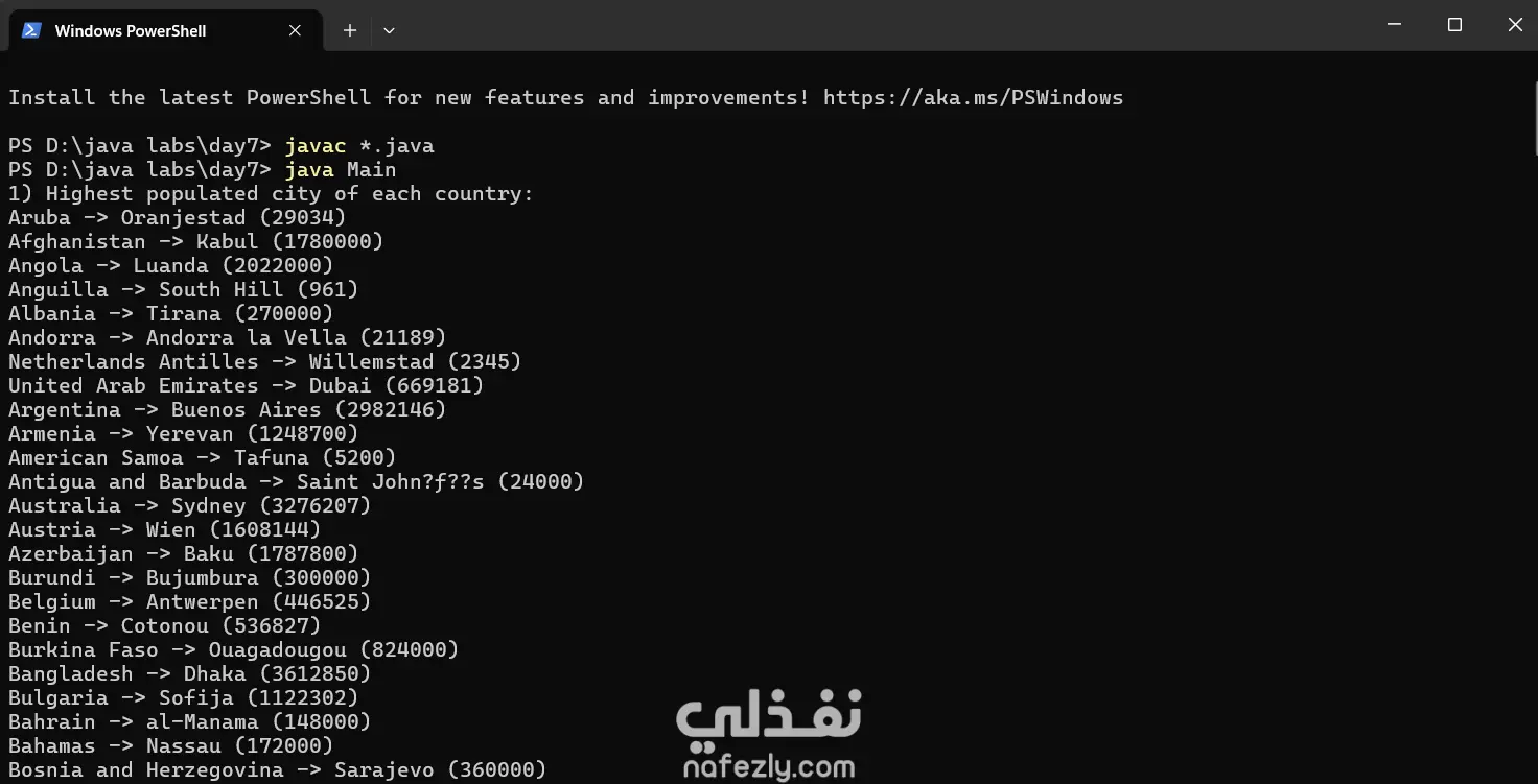 مشروع تحليل بيانات المدن والدول باستخدام Java و Streams API
