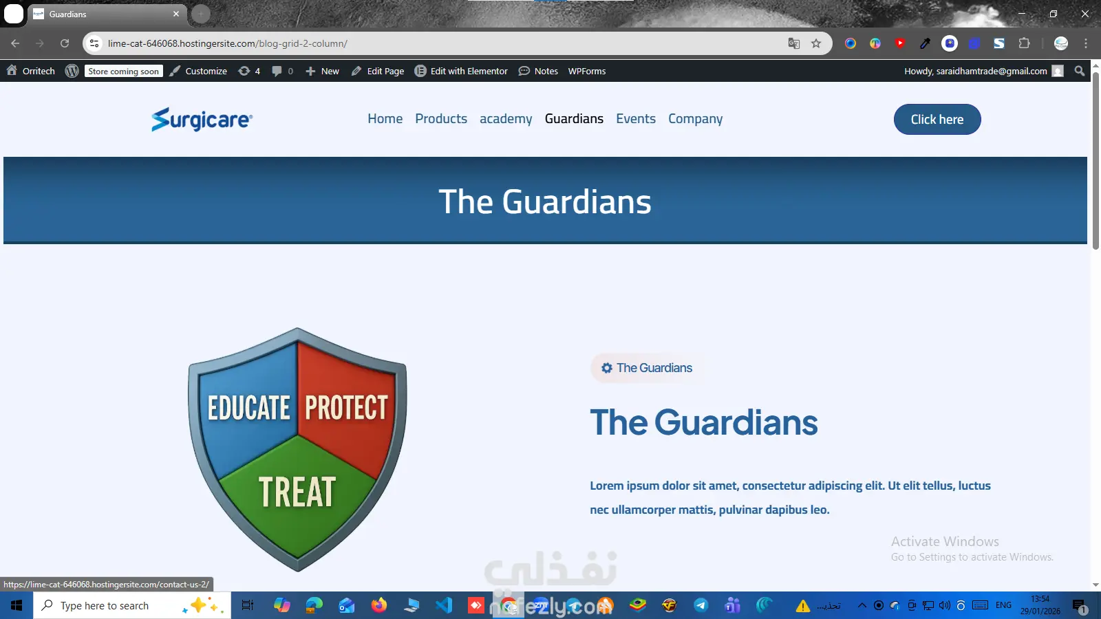 قمت بتصميم وتطوير موقع Surgicare، وهو موقع تعريفي احترافي لشركة متخصصة في حلول العناية بالجروح والمنتجات الطبية، مع التركيز على المظهر المؤسسي وتجربة مستخدم هادئة تعكس الثقة والمصداقية. 💻 تفاصيل العمل على الموقع: تصميم واجهة عصرية مناسبة للمجال الطبي (ألوان هادئة – تنظيم واضح). تنفيذ صفحة رئيسية تعرض رسالة الشركة وخدماتها بشكل مباشر. تجهيز أقسام: Products Academy Guardians Events Company تنظيم القائمة العلوية وربط الصفحات بشكل احترافي. إبراز الهوية البصرية (اللوجو – الخطوط – الألوان). تصميم متجاوب بالكامل مع جميع الأجهزة. تحسين تجربة المستخدم وسهولة التصفح. تنفيذ الموقع باستخدام WordPress + Elementor لمرونة التعديل مستقبلاً. 🎯 الهدف من الموقع: تقديم الشركة بشكل احترافي أمام العملاء والشركاء، وبناء صورة قوية وموثوقة لبراند طبي في السوق. 📌 الموقع مناسب لشركات المستلزمات الطبية، الرعاية الصحية، والمجالات الطبية المختلفة.