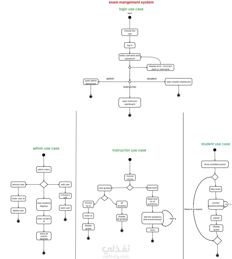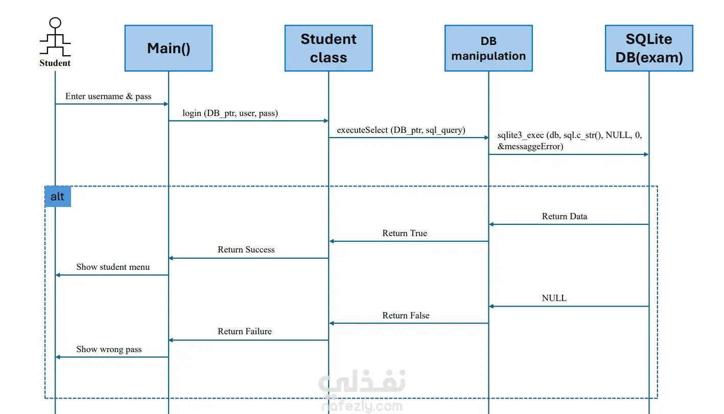 نبذة عن المشروع: نظام برمجى متكامل يهدف إلى ميكنة عملية الامتحانات بالكامل، بداية من وضع الأسئلة وبنك المعلومات، مروراً بإنشاء الامتحانات وتحديد الوقت، وصولاً إلى أداء الطالب للامتحان والتصحيح الآلي الفوري وإصدار التقارير. المميزات الرئيسية: نظام صلاحيات متعدد (Multi-Role Access): Admin: لإدارة الطلاب، المواد، وتعيين المدرسين للكورسات. Instructor: لإنشاء بنك الأسئلة (Question Bank)، وتكوين امتحانات عشوائية أو محددة، ومراقبة النتائج. Student: للدخول للامتحان في الوقت المحدد، مع وجود عداد تنازلي (Timer)، وظهور النتيجة فور الانتهاء. أنواع أسئلة متعددة: يدعم النظام أسئلة الاختيار من متعدد (MCQ) والصواب والخطأ (T/F). التصحيح الآلي: يتم حساب الدرجات تلقائياً بدون تدخل بشري لضمان النزاهة والسرعة. التقارير: استخراج تقارير بدرجات الطلاب ونسب النجاح في كل مادة. التقنيات المستخدمة (Technical Stack): لغة البرمجة:C++ قواعد البيانات: [SQLite]. مفاهيم برمجية: OOP