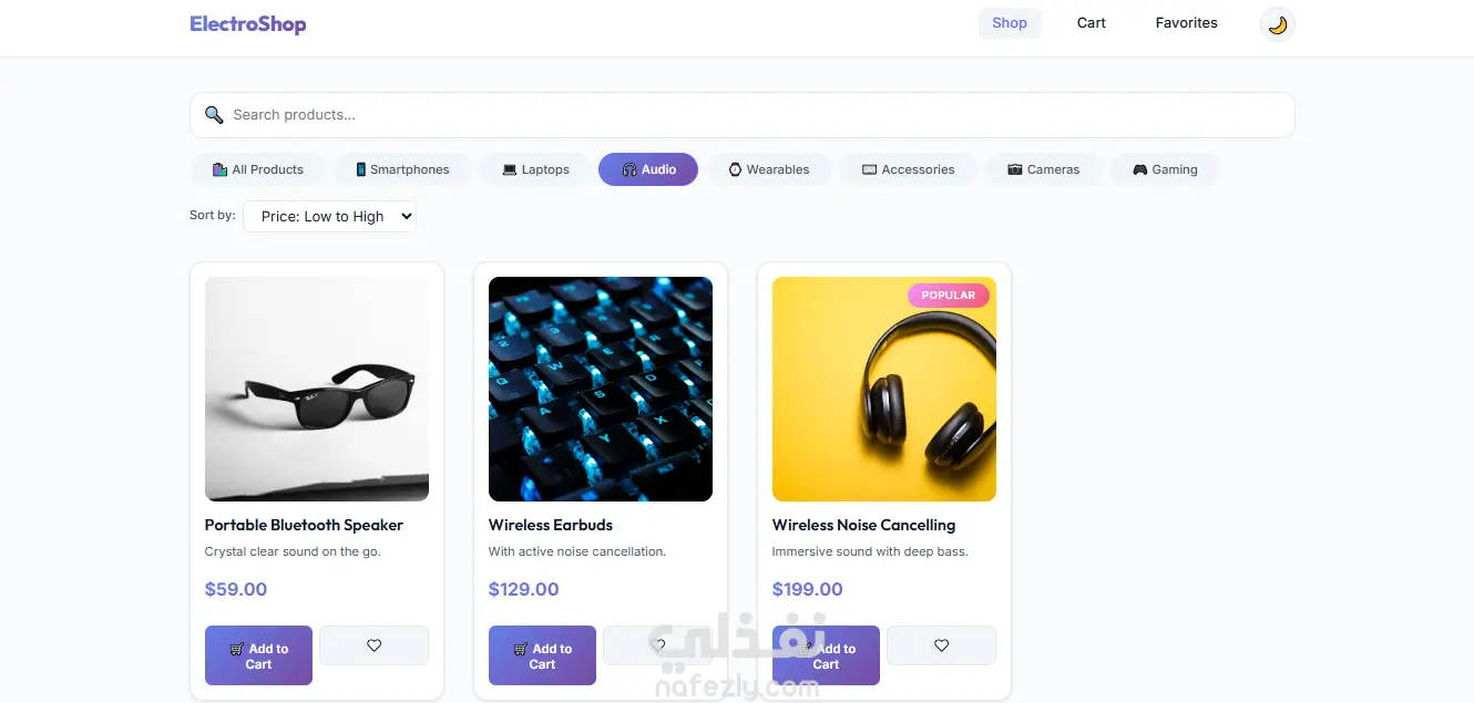 فلترة المنتجات حسب الفئات مثل اللابتوبات والهواتف والصوتيات.