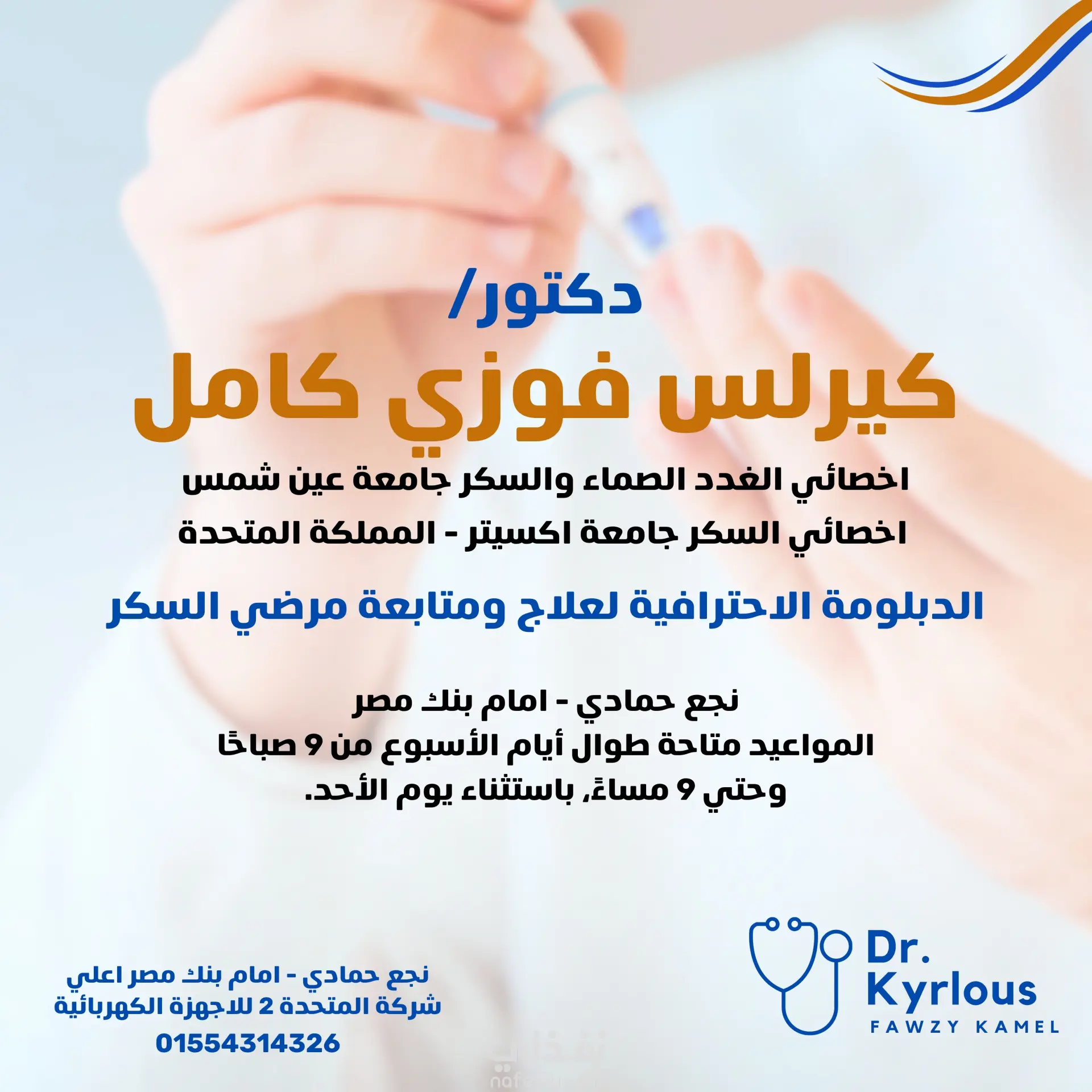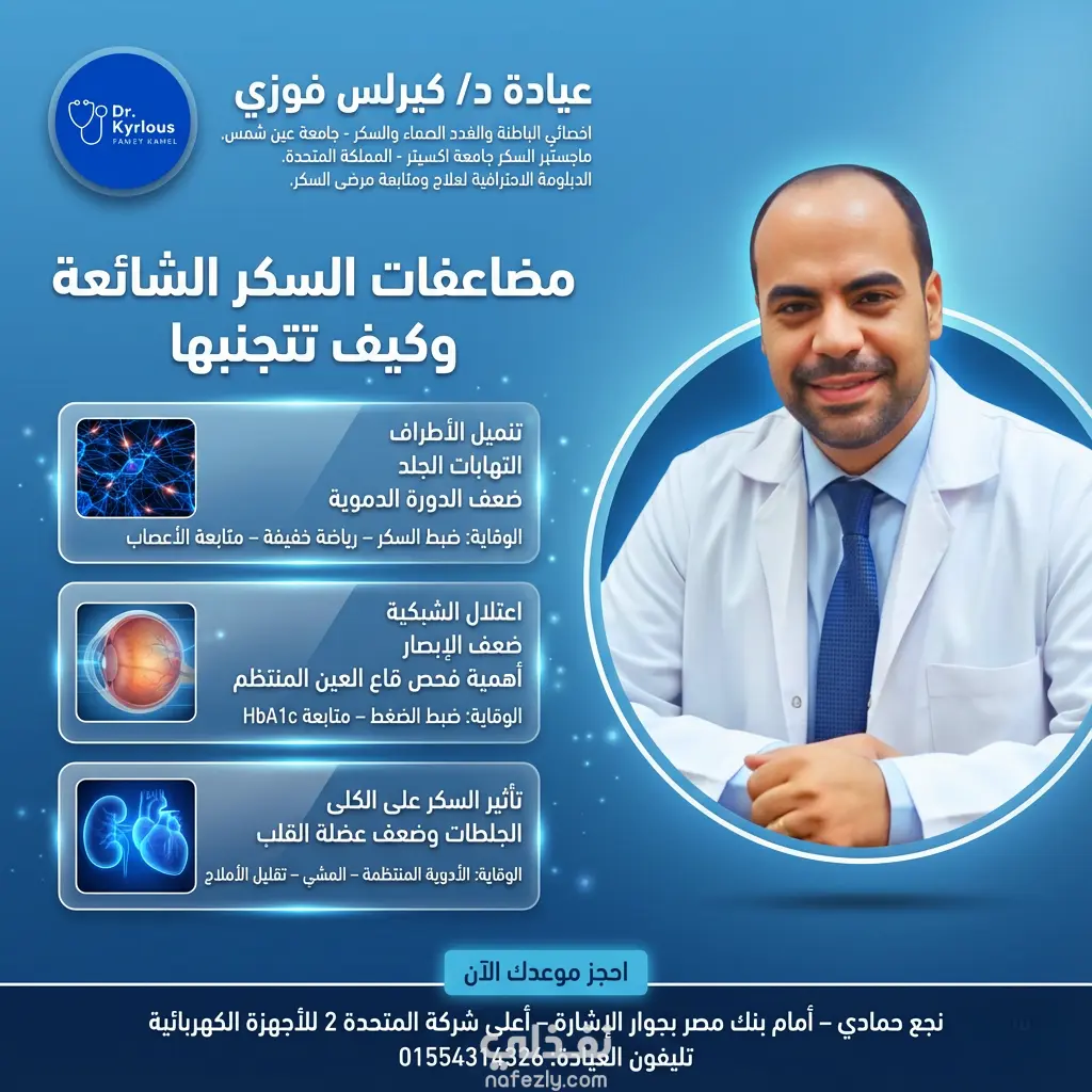 بعض تصميمات سوشيال ميديا الدعائية لخدمات عيادة باطنة وغدد صماء وسكر