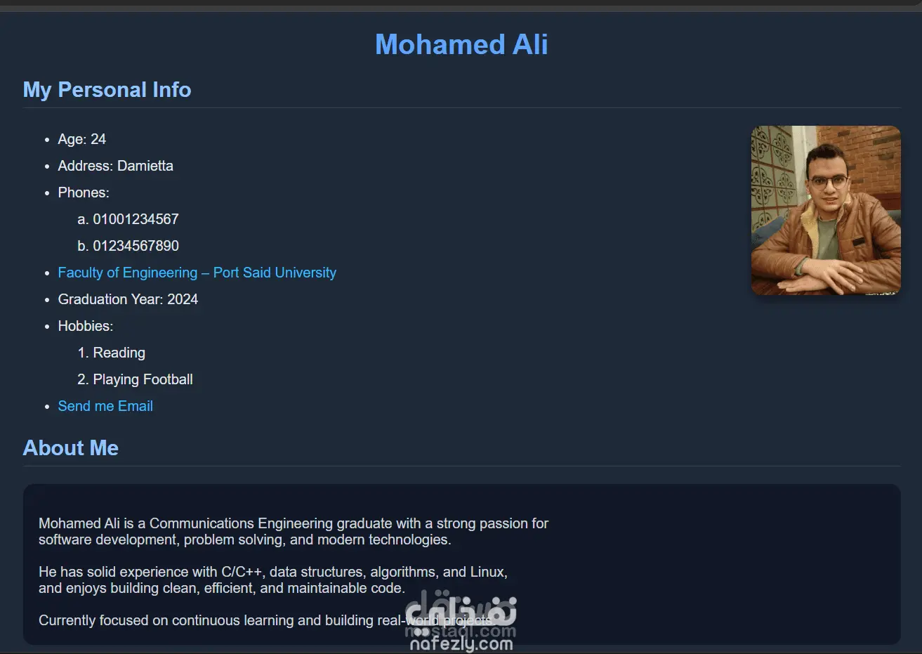 تصميم وتطوير واجهات ويب حديثة باستخدام HTML و CSS مع التركيز على البساطة، الأناقة، وتجربة المستخدم. يتضمن هذا العمل نظام صفحات متكامل خاص بالتسجيل، يشمل: - صفحة ترحيب (Welcome Page) بتصميم عصري وواجهة جذابة - صفحة تسجيل مستخدمين (Registration Form) منظمة وسهلة الاستخدام - صفحة تأكيد التسجيل (Thank You Page) بتصميم احترافي تم الاعتماد على: - تصميم Dark Theme حديث - تنسيق نظيف ومتناسق بين الصفحات - تأثيرات CSS بسيطة تضيف لمسة جمالية بدون التأثير على الأداء - كود منظم وقابل للتعديل والتطوير هذا النوع من التصميم مناسب للمواقع الشخصية، المشاريع التعليمية، ونماذج الأعمال (Portfolio)، ويمكن تطويره لاحقًا ليشمل JavaScript أو ربطه بالـ Backend.