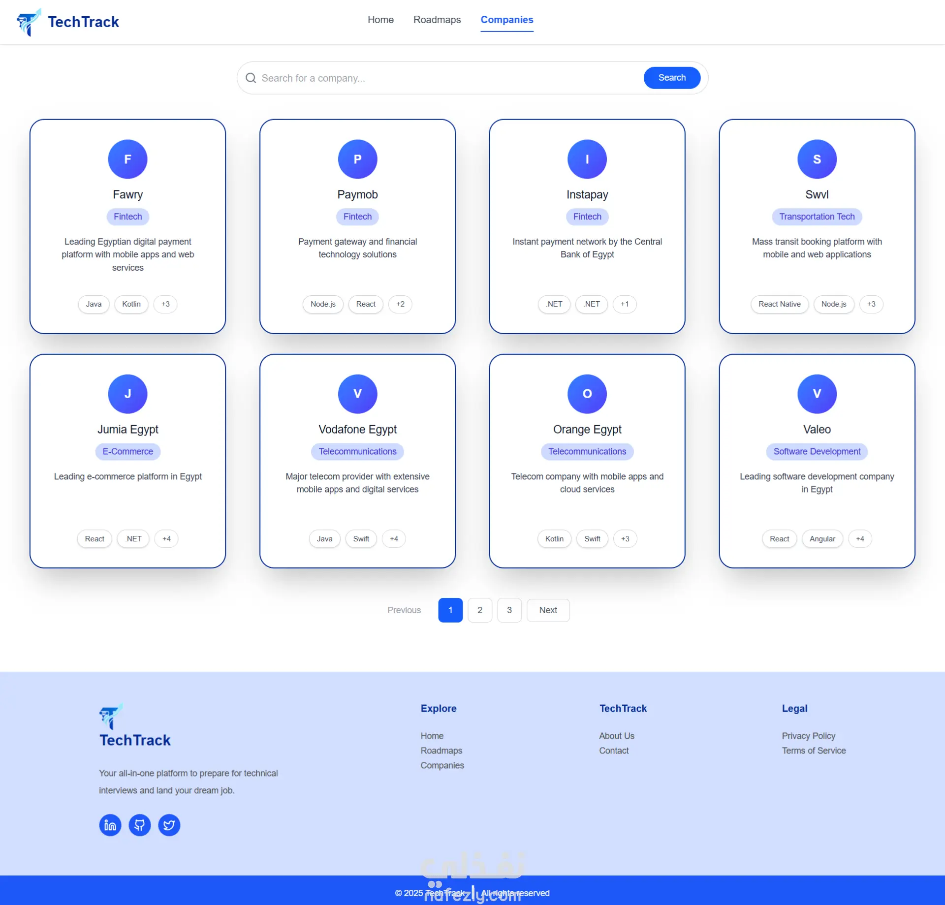 — منصّة ذكية لاختيار المسار التقني المناسب TechTrack هو موقع ويب تعليمي يهدف إلى مساعدة المبتدئين وأي شخص يرغب في عمل شيفت كارير في مجال التكنولوجيا على اختيار التراك المناسب له بناءً على اهتماماته وقدراته. الموقع يوفّر شرح واضح لكل مسار تقني مع Roadmap منظمة خطوة بخطوة توضّح ما يجب تعلمه من البداية حتى الاحتراف، بالإضافة إلى أهم الـ Technologies المطلوبة في كل تراك وسوق العمل المرتبط به. المشروع يساعد المستخدم على: تحديد التراك الأنسب له في مجال الـ Tech فهم متطلبات كل مسار قبل البدء فيه معرفة ترتيب تعلم المهارات بشكل صحيح اتخاذ قرار مدروس قبل عمل Career Shift تم تطوير الواجهة الأمامية باستخدام React.js لواجهة تفاعلية وسلسة، وربطها بواجهة خلفية باستخدام .NET لإدارة البيانات وتنظيم المحتوى، مع نشر المشروع على Vercel لضمان سرعة الأداء وسهولة الوصول. التقنيات المستخدمة: React.js – .NET – REST APIs – Responsive Design TechTrack — A Smart Platform for Choosing the Right Tech Career Path TechTrack is a web-based educational platform designed to help beginners and career shifters discover the most suitable technology track based on their interests and goals. The platform provides clear explanations for each tech track, along with well-structured learning roadmaps that guide users step by step from fundamentals to advanced levels. It also highlights the key technologies and tools required for each path, helping users make informed career decisions. TechTrack enables users to: Identify the right tech career path Understand track requirements before starting Follow organized learning roadmaps Plan a smooth and confident career shift into tech The frontend is built using React.js to deliver a dynamic and user-friendly experience, while the backend is developed with .NET to handle data management and content organization. The project is deployed on Vercel for fast and reliable performance. Technologies Used: React.js – .NET – REST APIs – Responsive Web Design