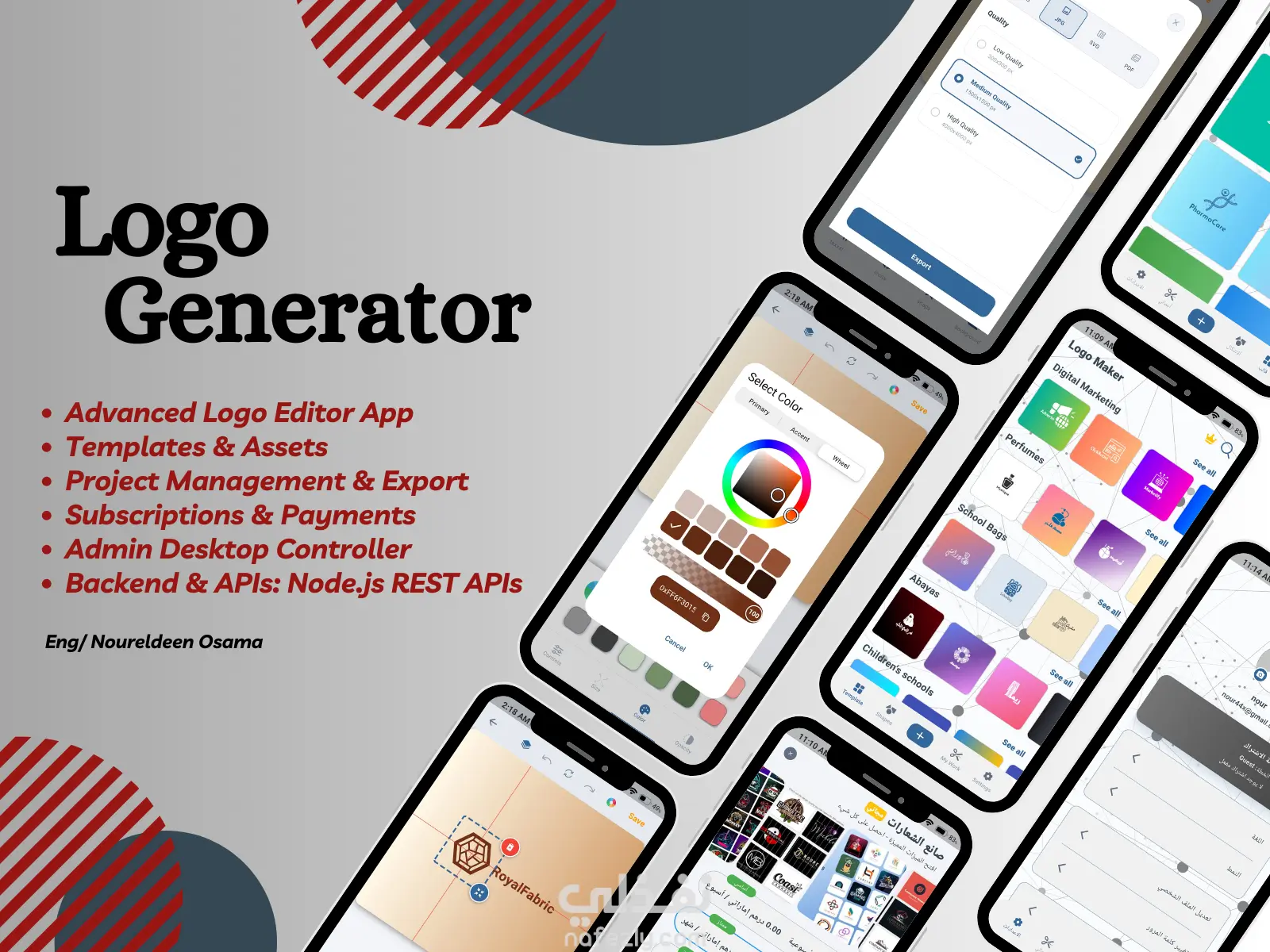 - تطبيق الموبايل للمستخدمين: تسجيل/دخول بالبريد وOTP، إدارة الحسابات، محرر شعارات متقدم، مكتبات الأصول، إدارة المشاريع، - تصدير PNG/JPG/PDF/SVG.