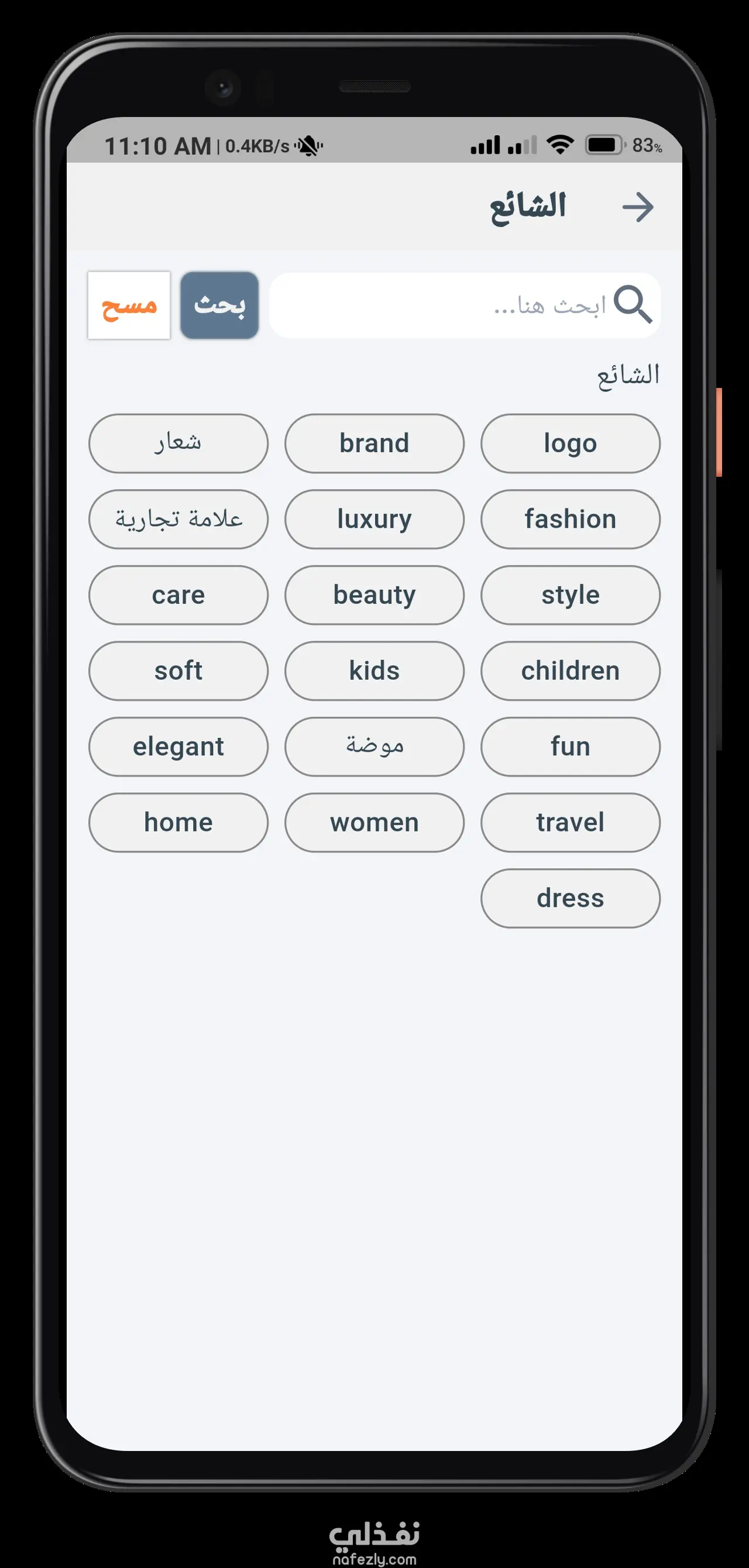 - البحث في القوالب: كلمات مفتاحية، فئات، ترند، تمرير لا نهائي.