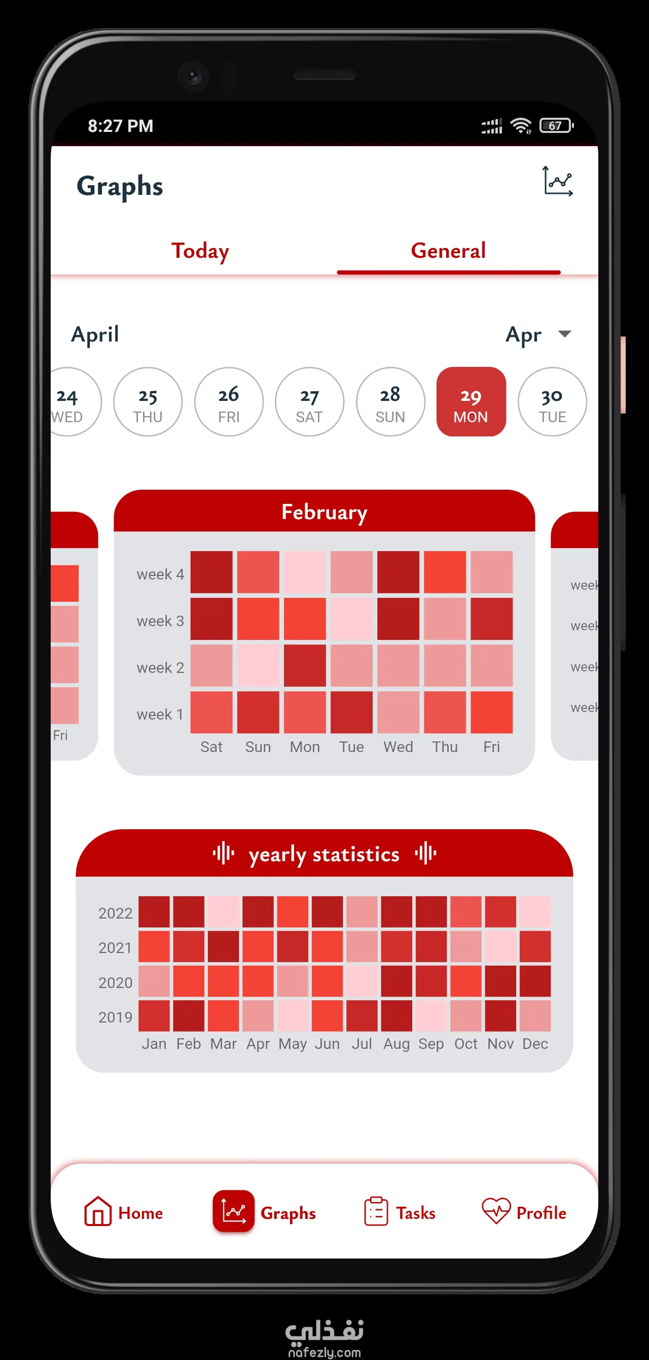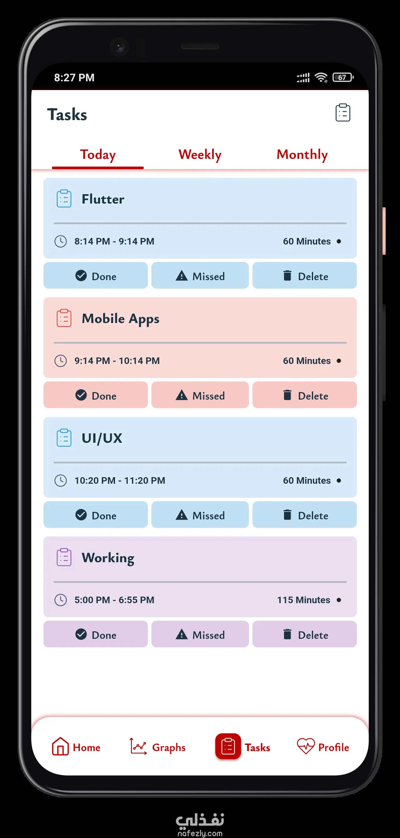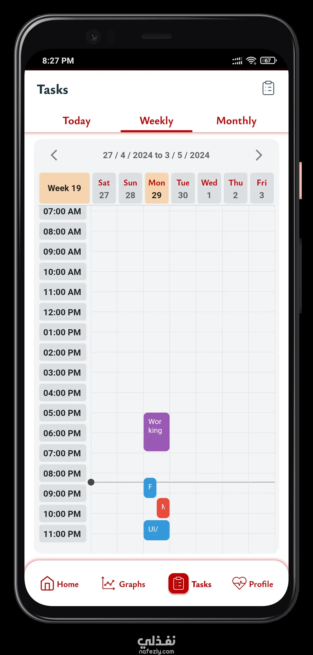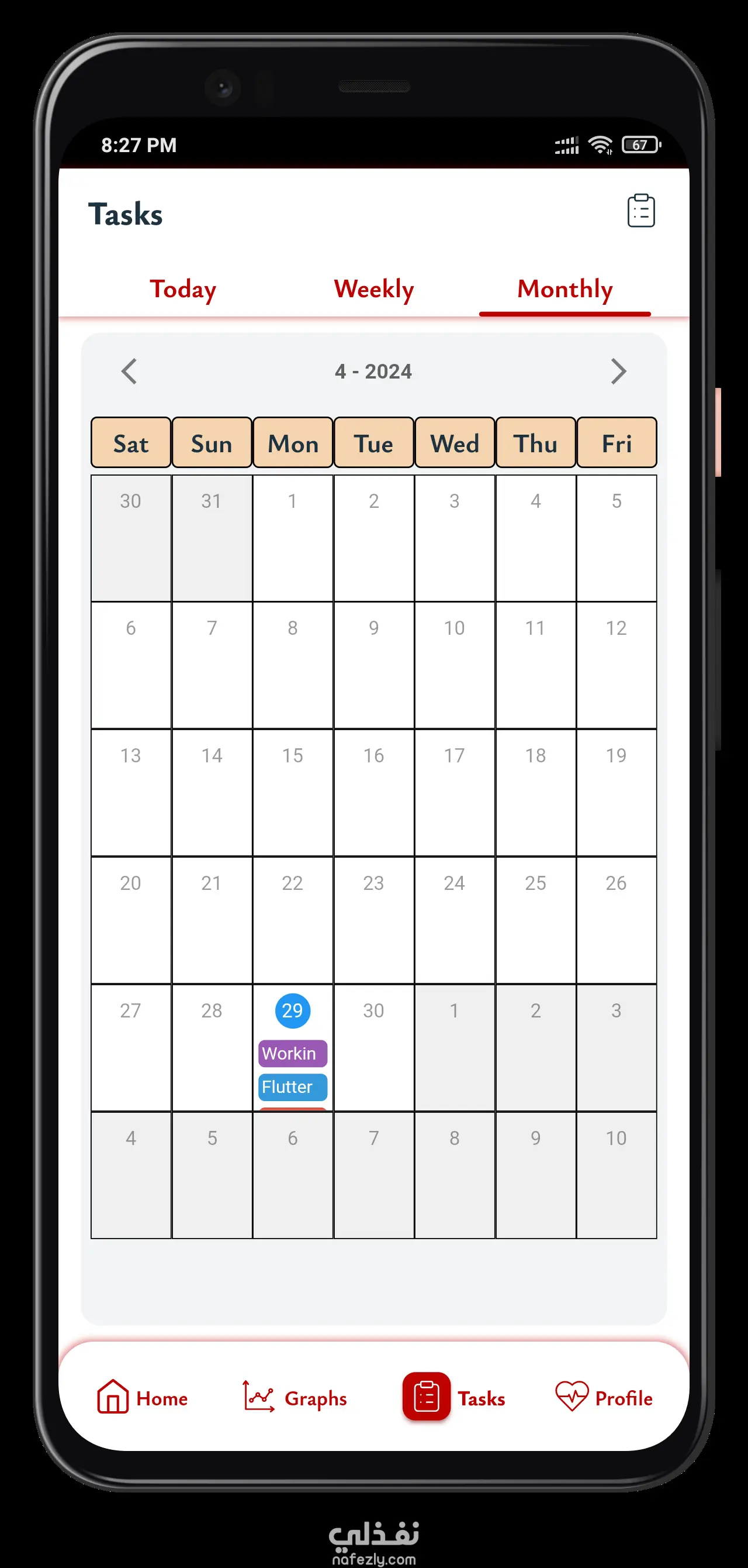 - عرض المهام اليومي، الأسبوعي، والشهري.