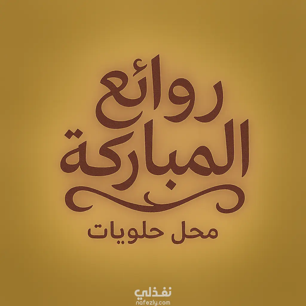 شعارًا نصيًا باسم "روائع المباركة" بخط عربي أنيق بأسلوب فاخر يناسب محل حلويات، مع لمسات زخرفية بسيطة توحي بالسكر والذهب.