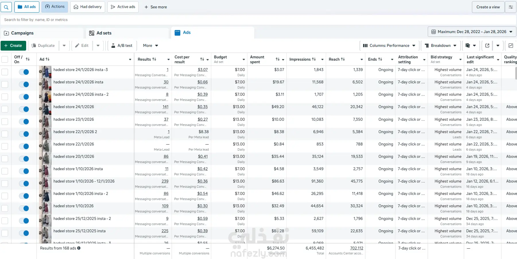 إدارة حملات لمتجر ملابس نسائية (Al-Hadeel Store) من الصفر وتحقيق مبيعات عبر إعلانات Meta.