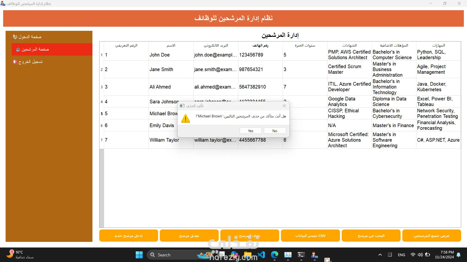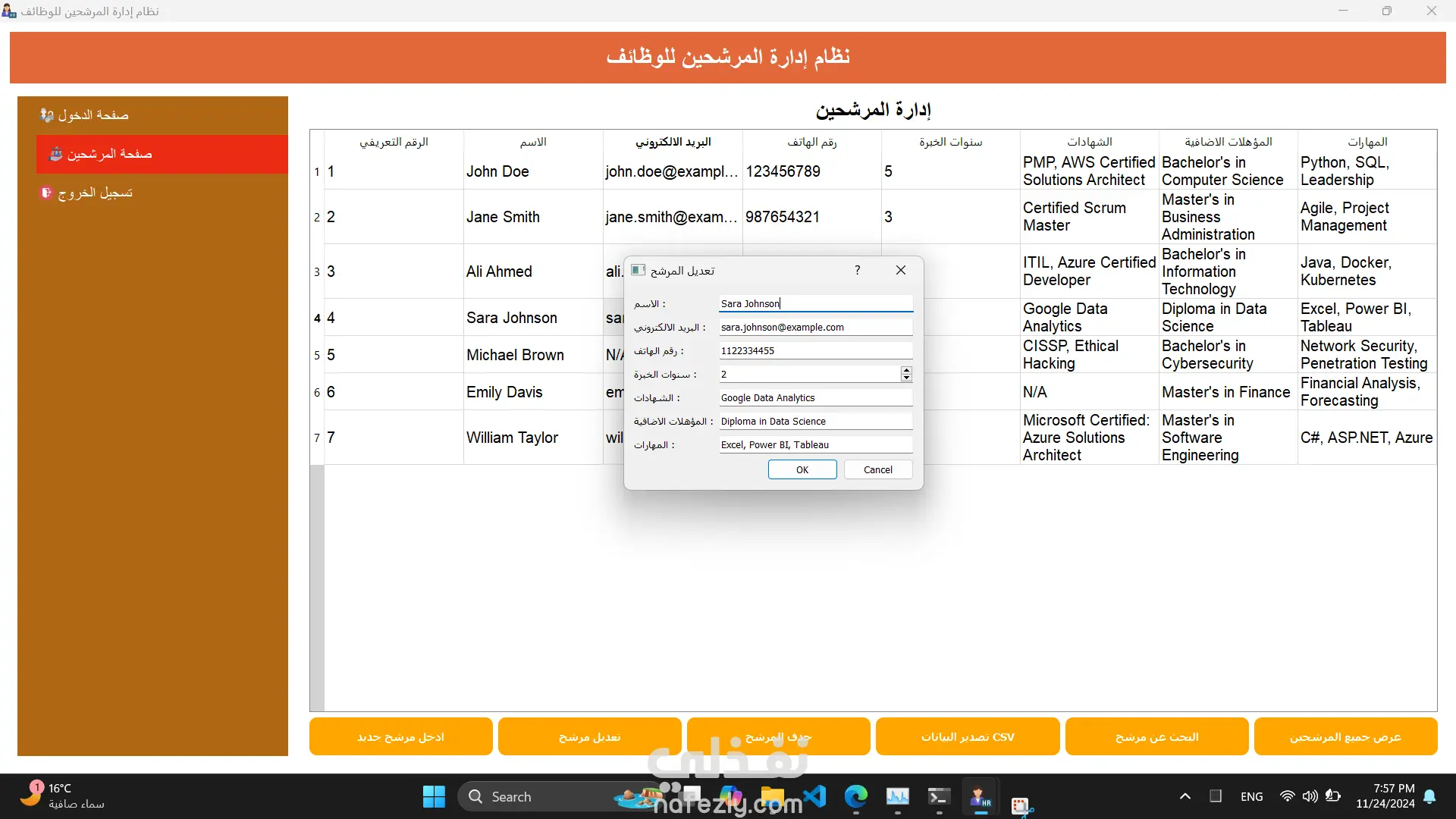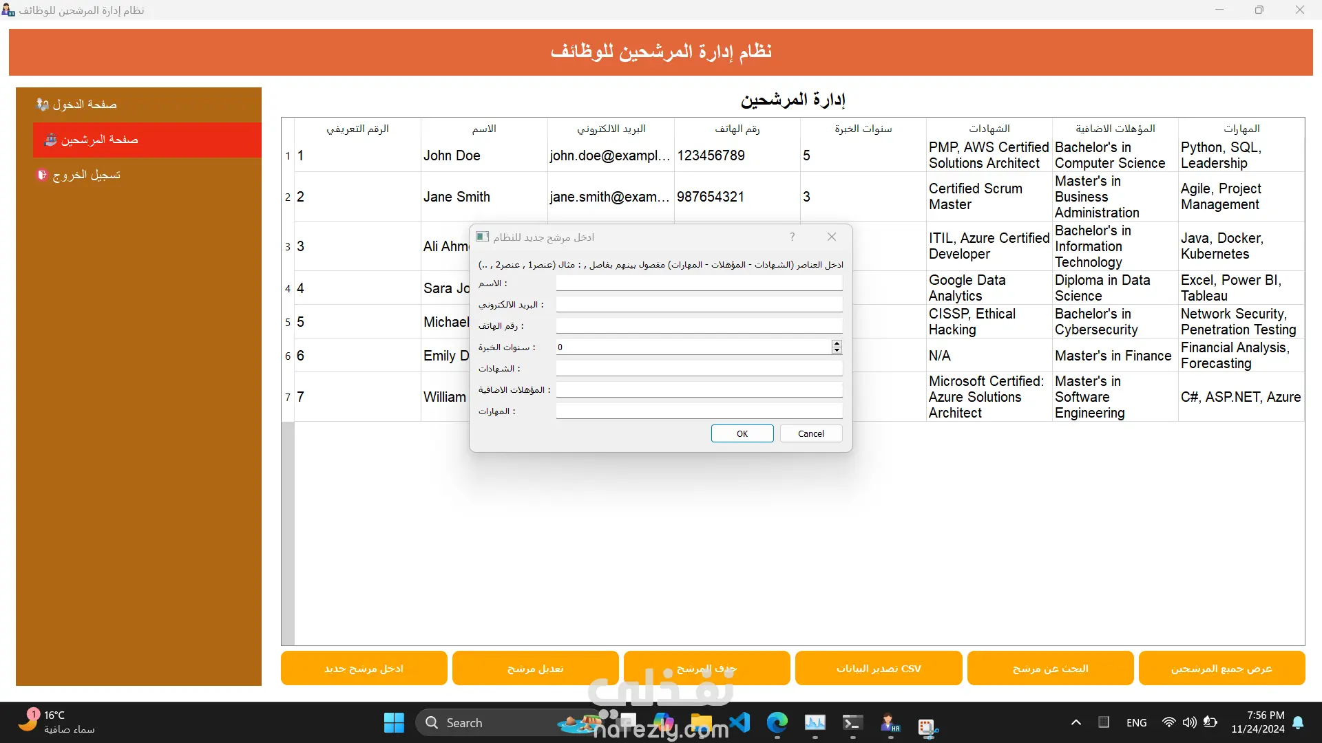 عمل نظام مساعد لقسم الموارد البشرية لشركة Pyramid Company يساعد في ادخل و تعديل و البحث عن المرشحين للوظائف طبقا للمواصفات و الخصائص لكل مرشح مثل المؤهلات و عدد سنوات الخبرة.