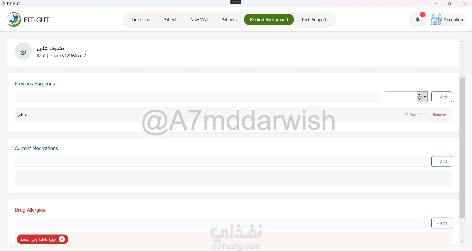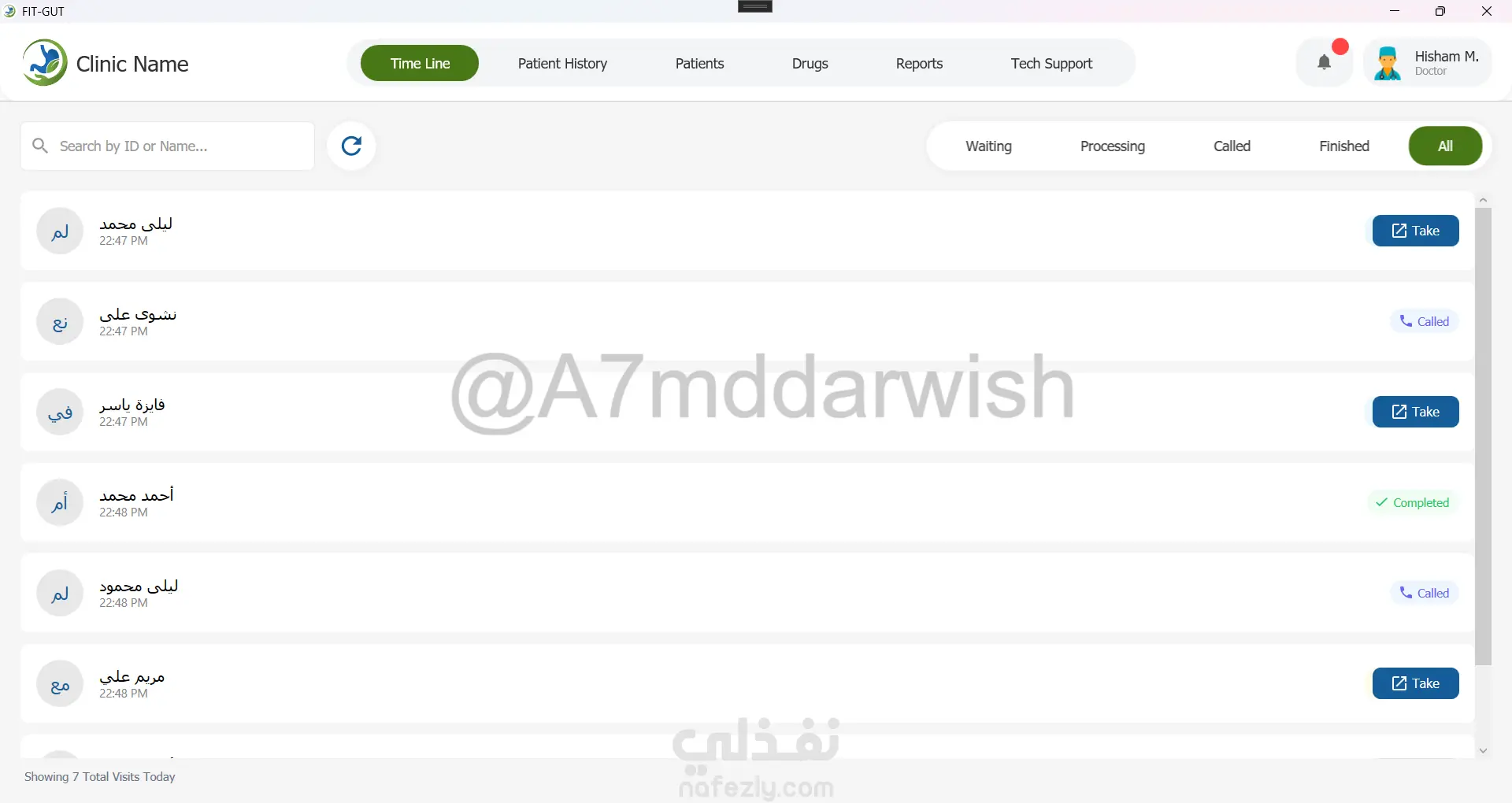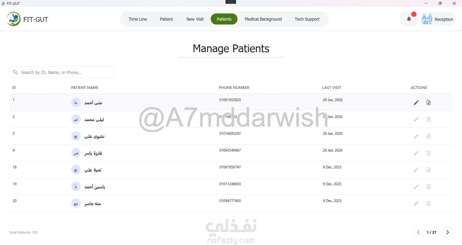 تطبيق سطح مكتب شامل مصمم خصيصاً للعيادات والمنشآت الطبية، مبني بتقنيات حديثة ومعايير عالية لتجربة المستخدم. المميزات الرئيسية: نظام صلاحيات متعدد المستويات للأطباء وموظفي الاستقبال تسجيل وإدارة بيانات المرضى بشكل كامل تتبع دقيق للزيارات الطبية وتسجل المرضي قاعدة بيانات شاملة للأدوية والوصفات الطبية مكتبة متكاملة لتعليمات الاستخدام الدوائي نظام بحث متقدم مع ترقيم تلقائي للصفحات عرض تفصيلي ومنظم لتاريخ المريض الطبي واجهة عصرية وسلسة مع تأثيرات حركية احترافية التحقق التلقائي من صحة البيانات المدخلة مؤشرات تحميل فورية لتحسين تجربة الاستخدام تحديثات لحظية عبر التطبيق نظام تقارير طبية شامل