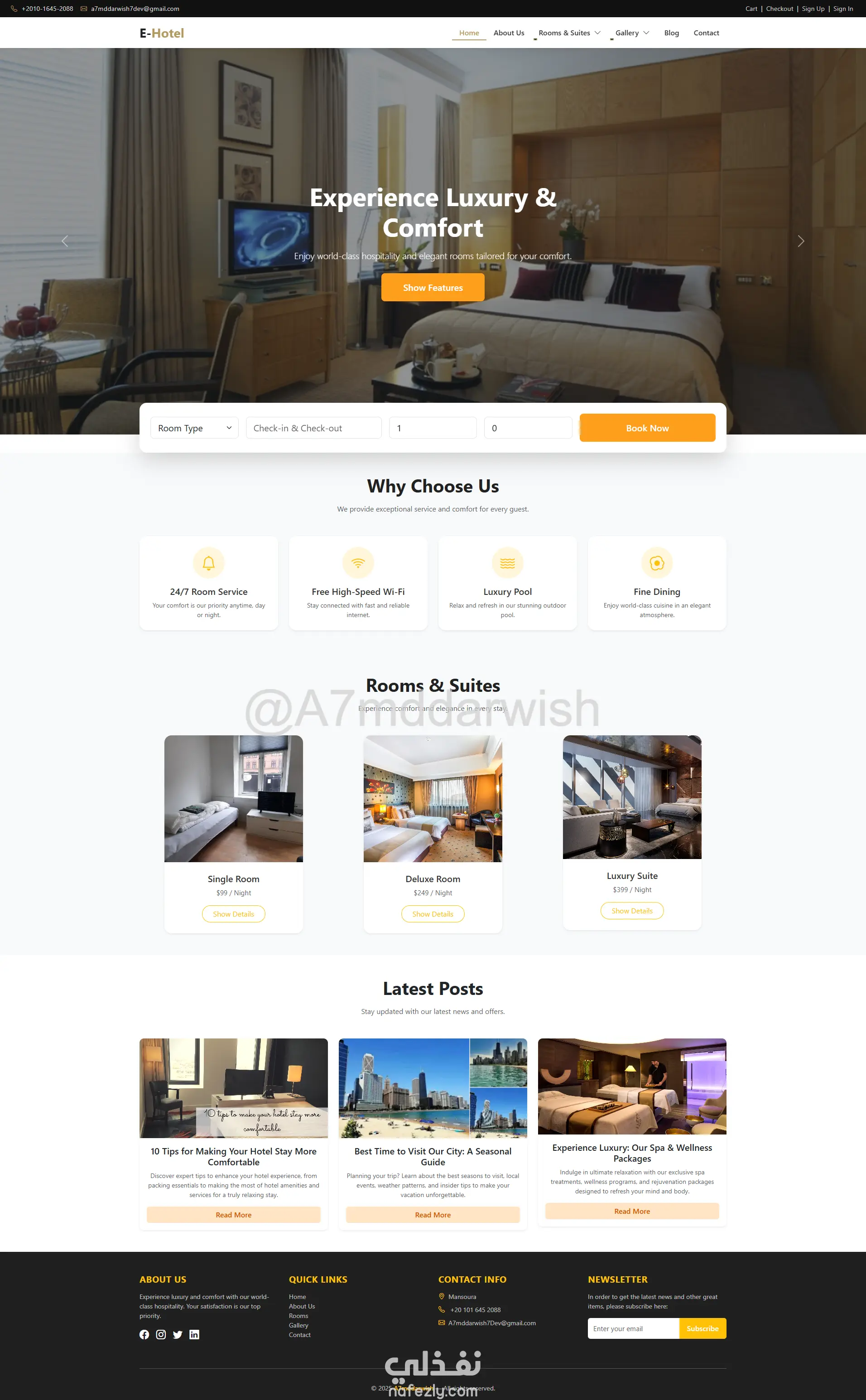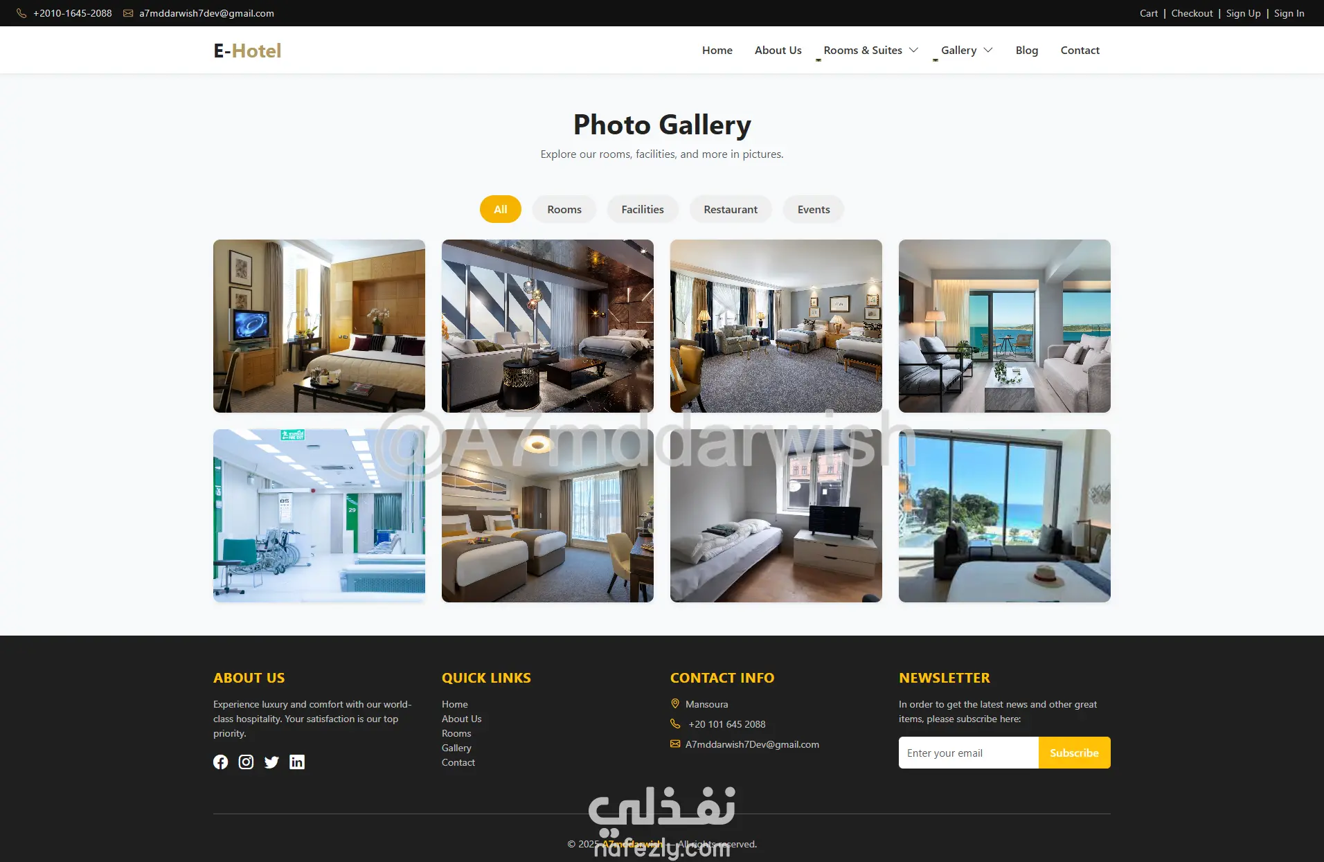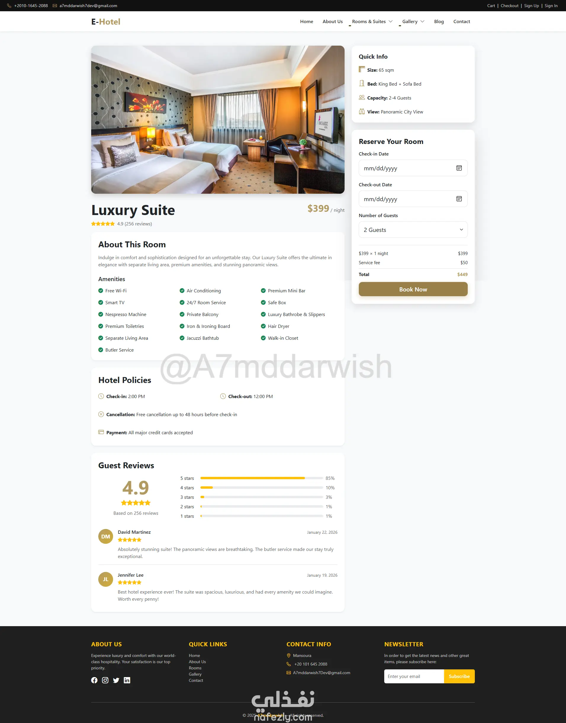 المشروع جاهز للتطوير والتوسع حسب احتياجاتك، سواء لفندق واحد أو سلسلة فنادق كاملة، مع إمكانية ربط بوابات دفع عالمية وإضافة لغات متعددة. استثمار حقيقي في التحول الرقمي لأعمالك الفندقية!