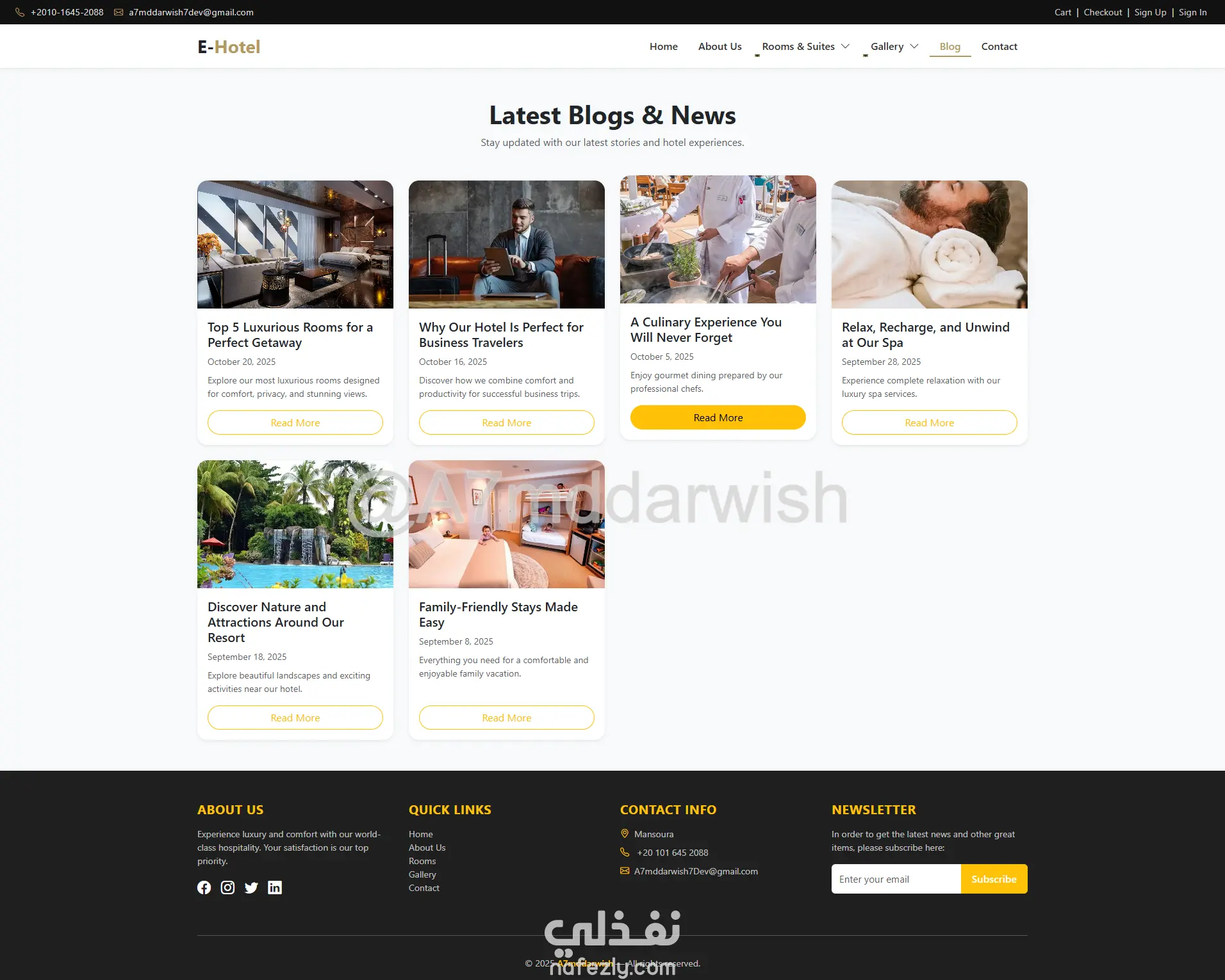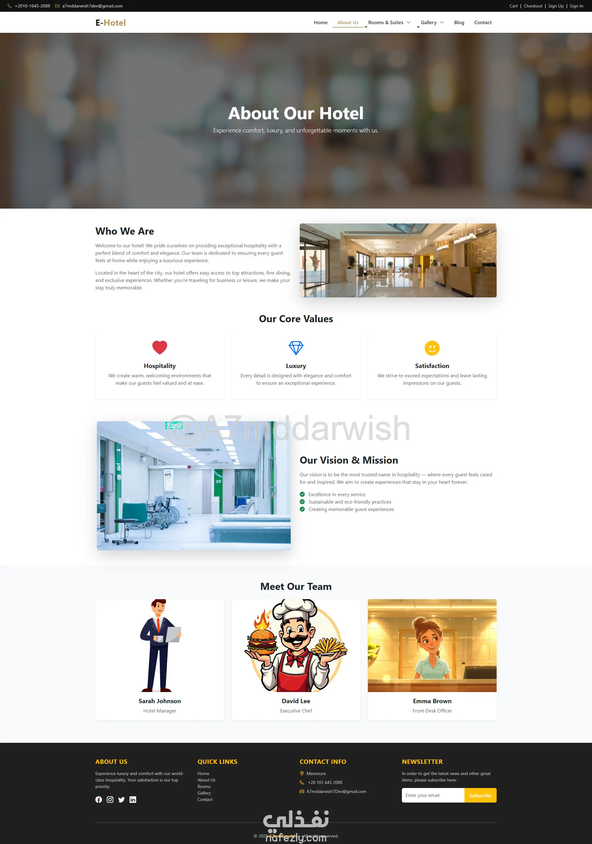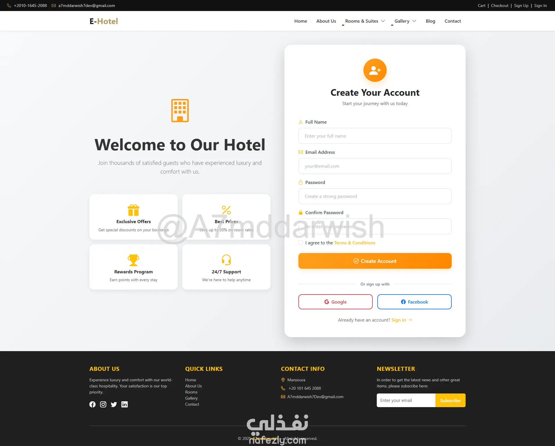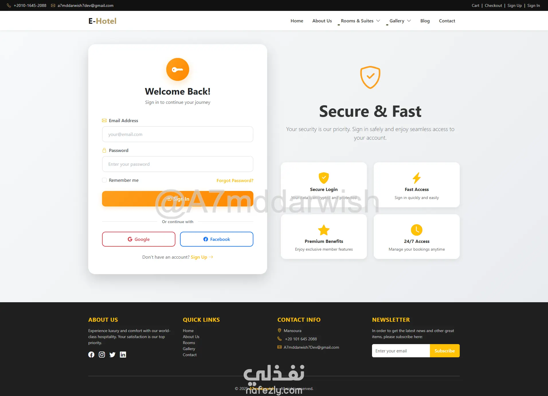 المشروع جاهز للتطوير والتوسع حسب احتياجاتك، سواء لفندق واحد أو سلسلة فنادق كاملة، مع إمكانية ربط بوابات دفع عالمية وإضافة لغات متعددة. استثمار حقيقي في التحول الرقمي لأعمالك الفندقية!