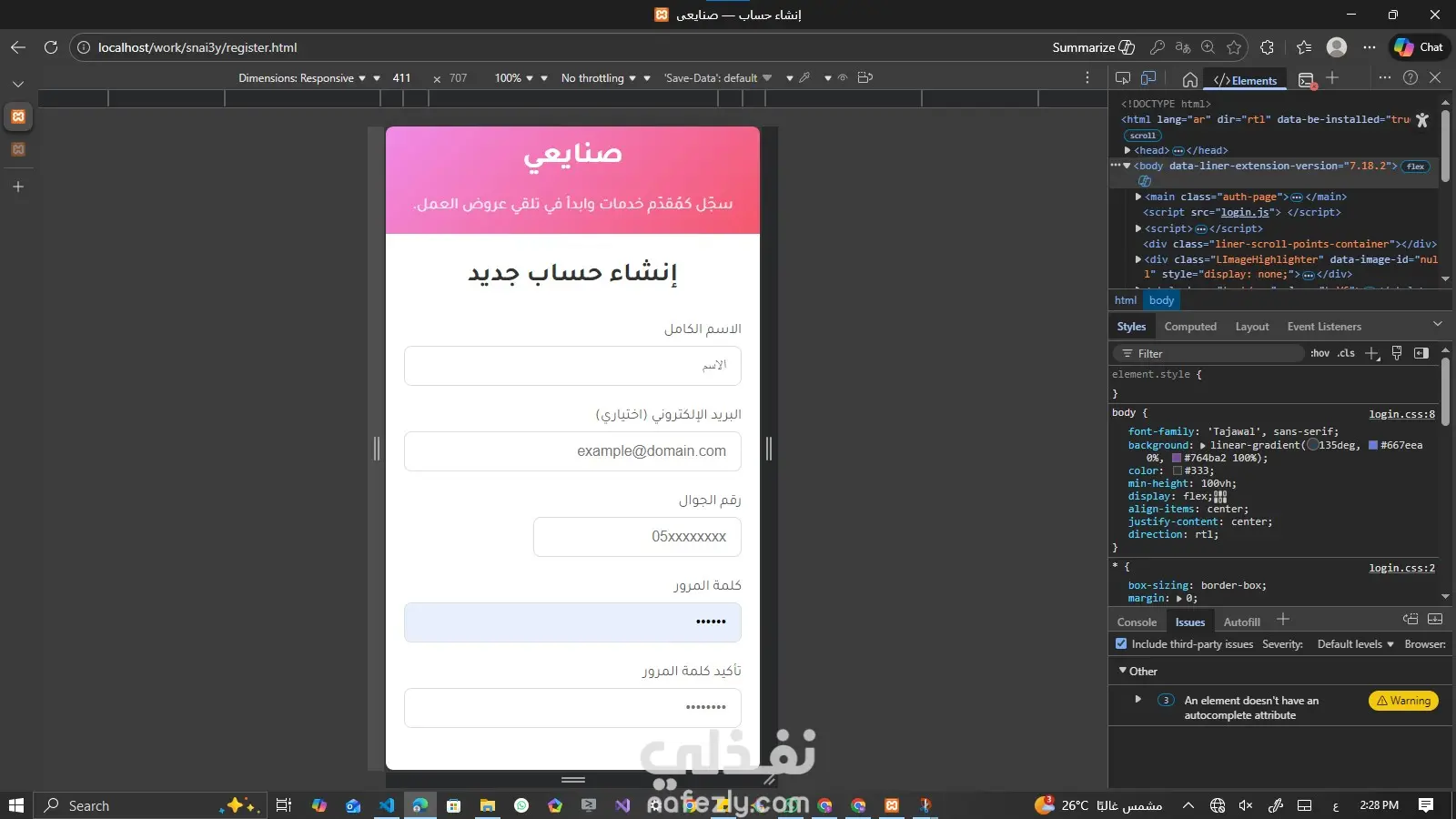 منصة "صنايعي": الحل التقني المتكامل لربط الحرفيين بالعملاء وسد فجوة الصيانة المنزلية نبذة عن المشروع: منصة "صنايعي" هي وجهة رقمية متطورة تهدف إلى تنظيم قطاع المهن الحرة والحرف اليدوية (مثل السباكة، الكهرباء، النجارة، وغيرها). المنصة مصممة لتكون "الوسيط الموثوق" الذي يضمن للعميل جودة الخدمة، وللحرفي فرصة للوصول إلى عدد أكبر من العملاء وتنظيم عمله بشكل احترافي. ما الذي يميز منصة "صنايعي"؟ نظام تطبيقات ثنائي (Dual App System): تطبيق العميل: واجهة بسيطة تمكن المستخدم من طلب "صنايعي" في خطوات معدودة، مع إمكانية تحديد الموقع بدقة، واختيار التخصص المطلوب، والاطلاع على تقييمات الحرفيين السابقين. تطبيق الحرفي (Pro App): واجهة مخصصة للفنيين لإدارة طلباتهم، تحديد مواعيد العمل، عرض سابقة أعمالهم (Portfolio)، واستلام مستحقاتهم المالية بسهولة. سهولة الاستخدام والوصول: تصميم يراعي كافة الفئات العمرية والمستويات الثقافية، لضمان أن يتمكن الحرفي من التعامل مع التطبيق دون تعقيد تقني.