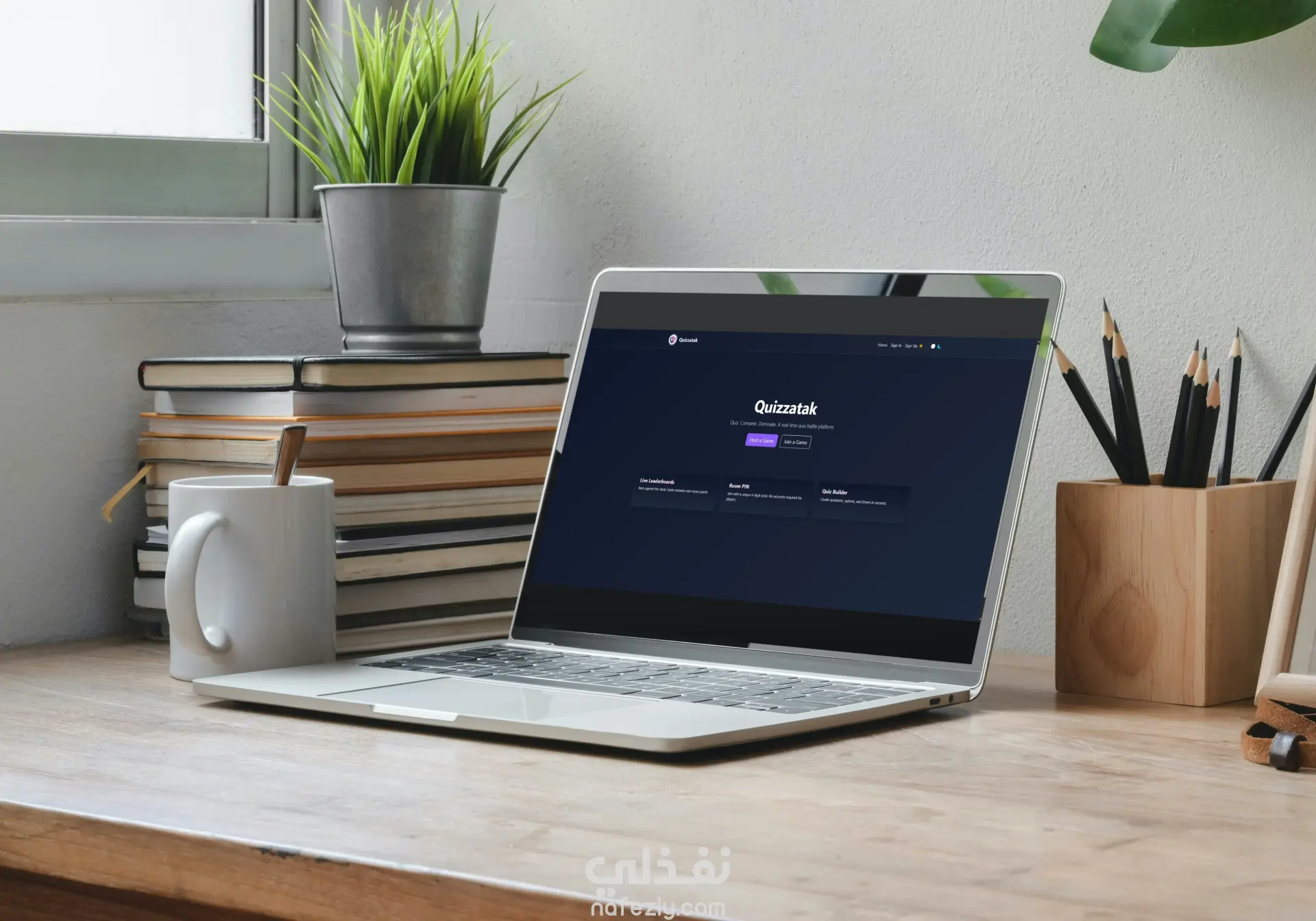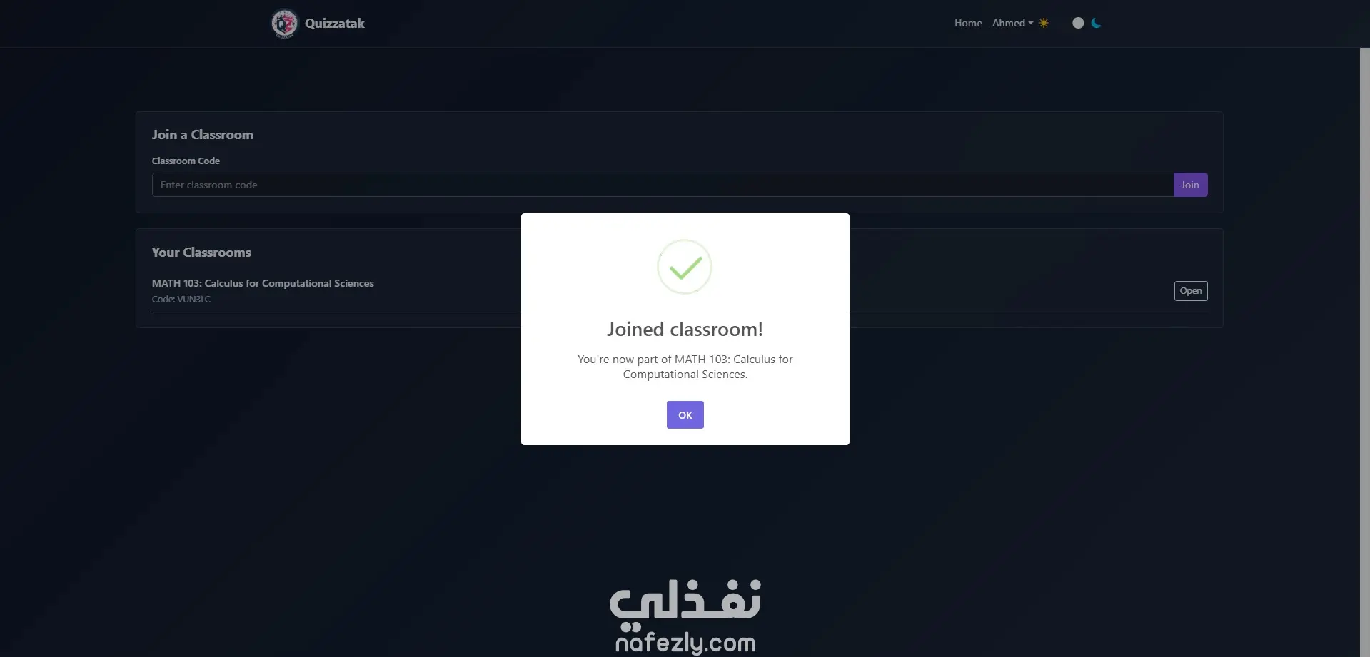 كويزاتك موقع متكامل يسمح للمستخدم أن يسجل حساب معلم أو حساب طالب. يستطيع المعلم أن يصنع فصل دراسي إفتراضي و يضيف إليه الطلاب. من ثم يقوم بإستضافة امتحانات إجبارية لكل طالب في الفصل. يستطيع المعلم أن يدير الطلاب و يتطلع على درجاتهم في الامتحانات. الأضافة: الامتحانات تعمل بالوقت الحقيقي (Real-Time) بإستخدام Socket.IO، بحيث يبدأ و ينتهي الامتحان من قِبل المعلم فقط و لا يستطيع الطالب أن يدخل الامتحان قبل أو بعد انتهائه. تم هذا المشروع بمساعدة أربع زملاء و قمت بالعمل على الFrontend و أغلب الصفحات و الربط بينها و بين الBackend.