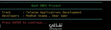 نظام إدارة قواعد بيانات يعمل من خلال سطر الأوامر (Command Line) تم تطويره بالكامل باستخدام Bash Scripting، ويقوم بمحاكاة قاعدة بيانات علائقية (Relational Database) بالاعتماد على نظام الملفات في لينكس. يوفّر المشروع واجهة تفاعلية قائمة على القوائم (Menu-Driven Interface) تتيح للمستخدم إنشاء قواعد البيانات، الاتصال بها، وحذفها. كما يدعم النظام الإدارة الكاملة للجداول وتنفيذ جميع عمليات CRUD وتشمل: الإدخال (Insert)، الاستعلام (Select)، التحديث (Update)، والحذف (Delete). يدعم النظام التحقق من أنواع البيانات (Data Type Validation) وفرض المفتاح الأساسي (Primary Key Enforcement)، مما يعكس مستوى متقدمًا في البرمجة باستخدام Bash والتعامل مع النظام وإدارة البيانات على مستوى النظام (System-Level Data Manipulation).